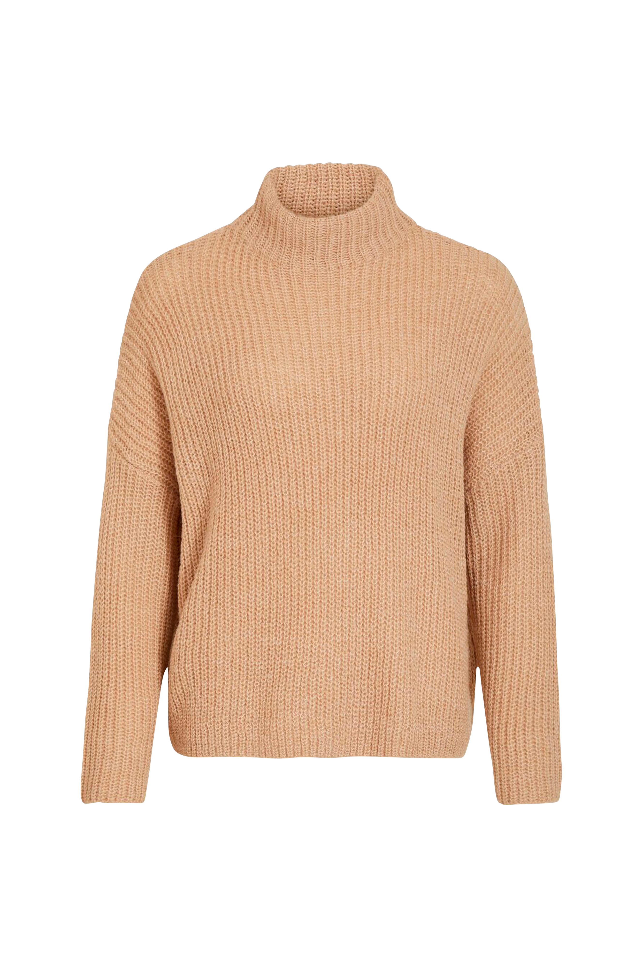 Vila viGlippa L/S Knit -neulepusero. Rento malli, pystykaulus, leveät hihat ja madalletut olkapäät.