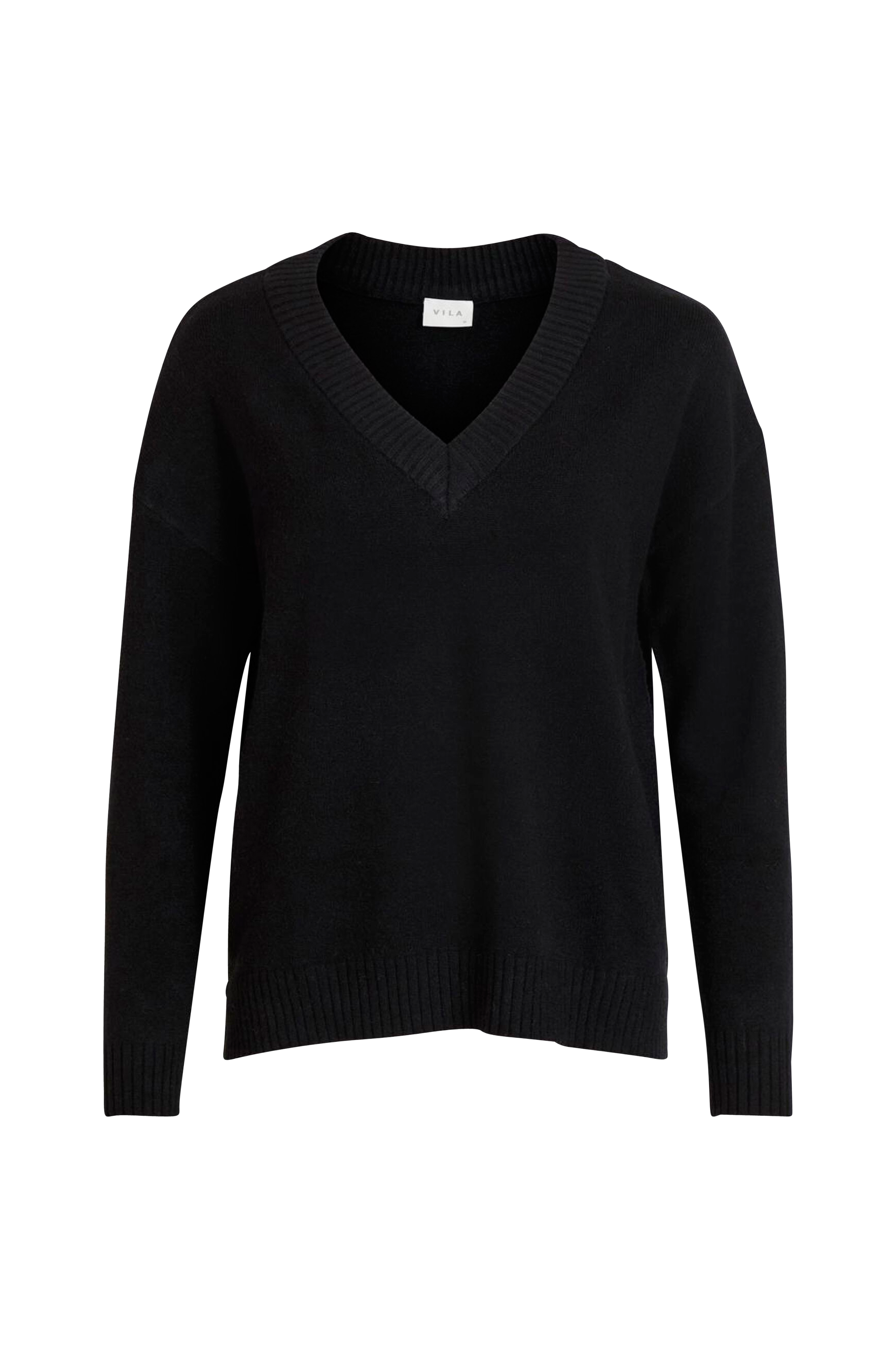 Pehmeä neulepusero, jossa V-pääntie edessä ja madalletut olkapäät. Leveä joustinneulereuna helmassa, hihansuissa ja pääntiessä.