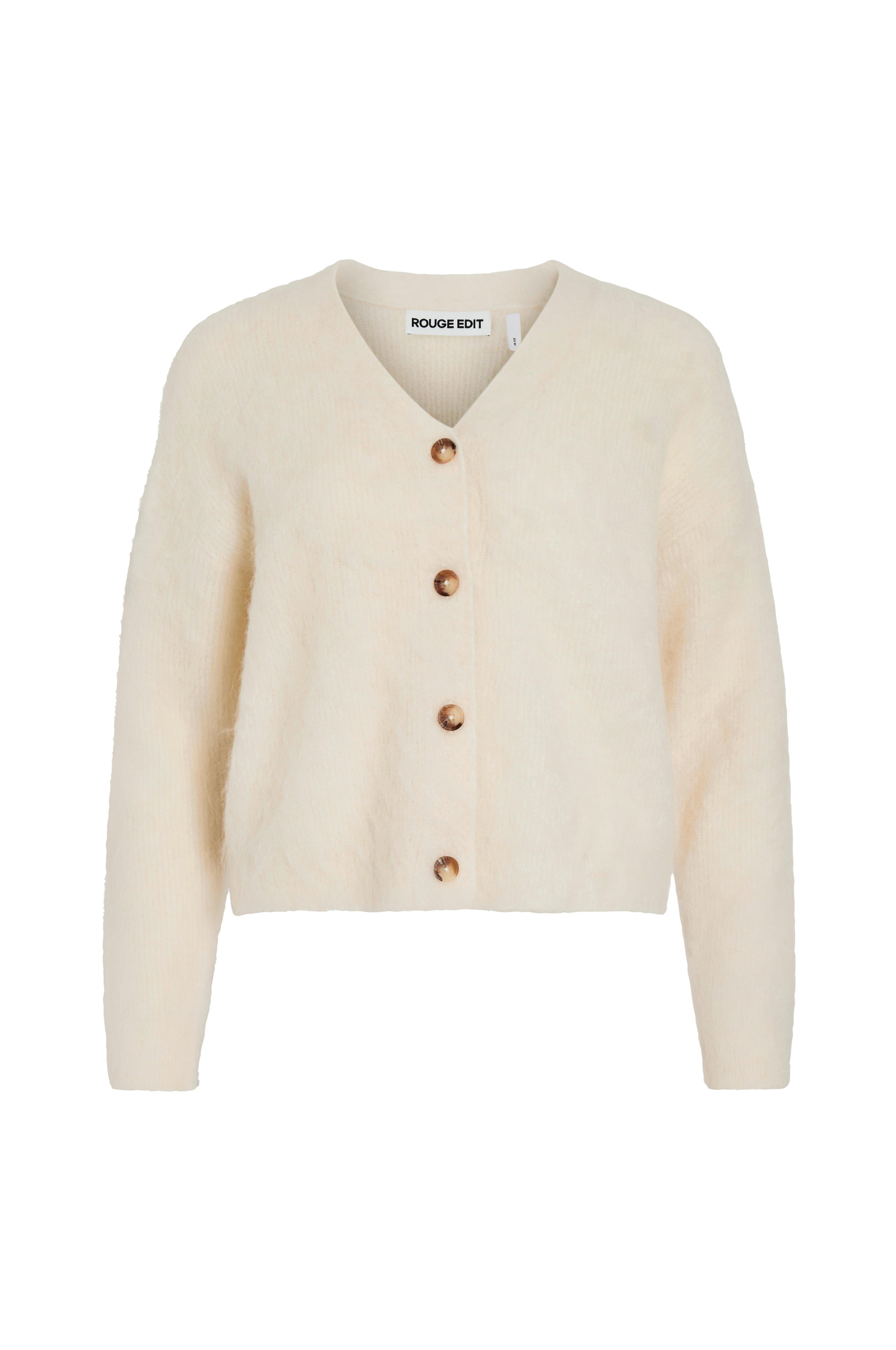 • Tiheäsilmukkainen neuletakki alpakka-sekoituksesta• V-muotoinen pääntie• Napit edessä• Pitkät hihat pudotetuilla olkapäillä• Ribbiresorit hihansuissa ja alahelmassa