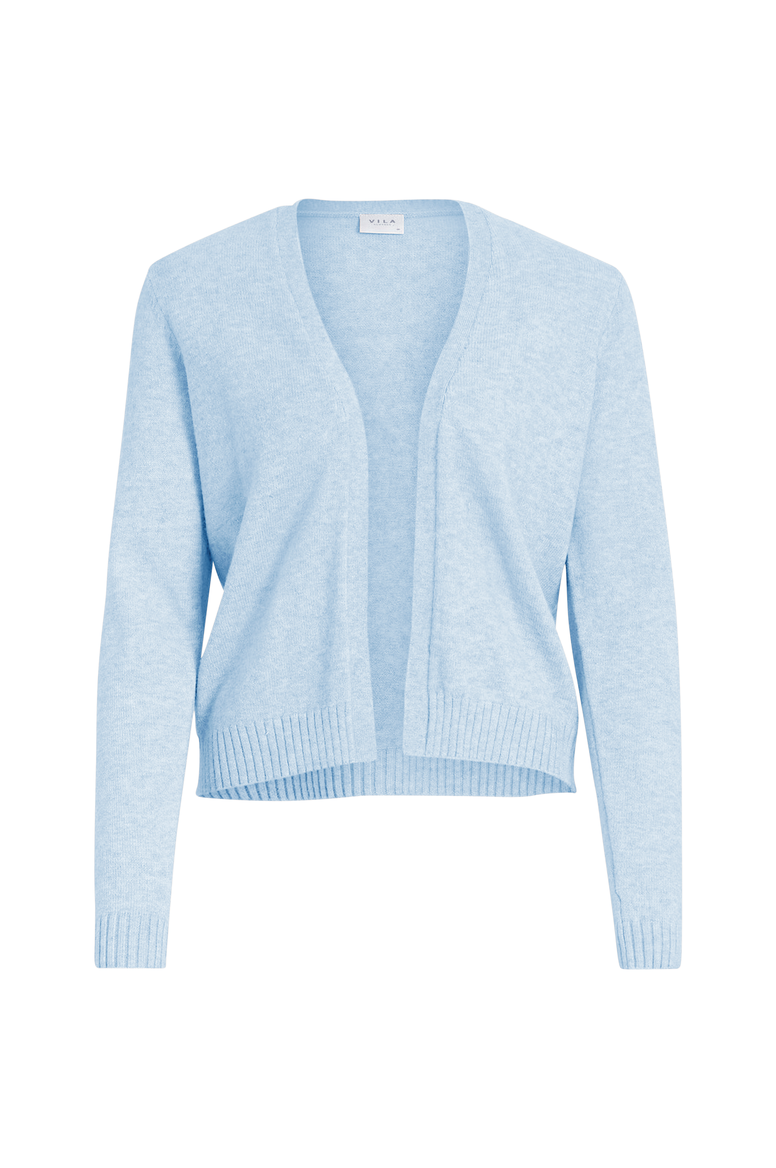 Vila viRil Short L/S Knit Cardigan -neuletakki pehmeää ja ohutta viskoosisekoitetta. Lyhyt, avoin malli, jossa joustinneulereuna helmassa ja hihansuissa.