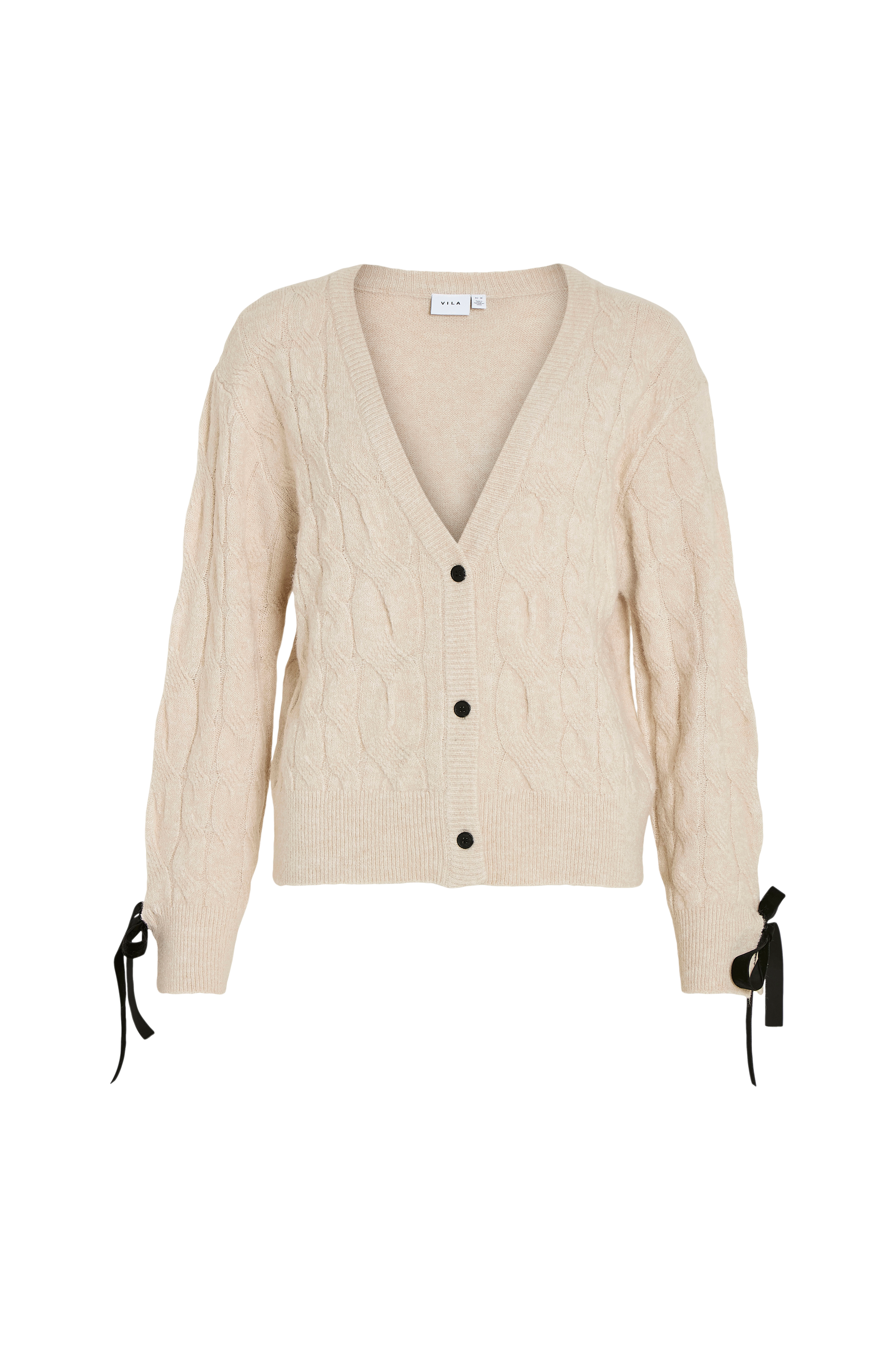 • Palmikkoneulottu neuletakki• V-kaula-aukko• Napit• Pitkät hihat halkioilla ja nyöreillä manseteilla• Ribatut reunat kaula-aukon ympärillä, edessä ja alhaalla