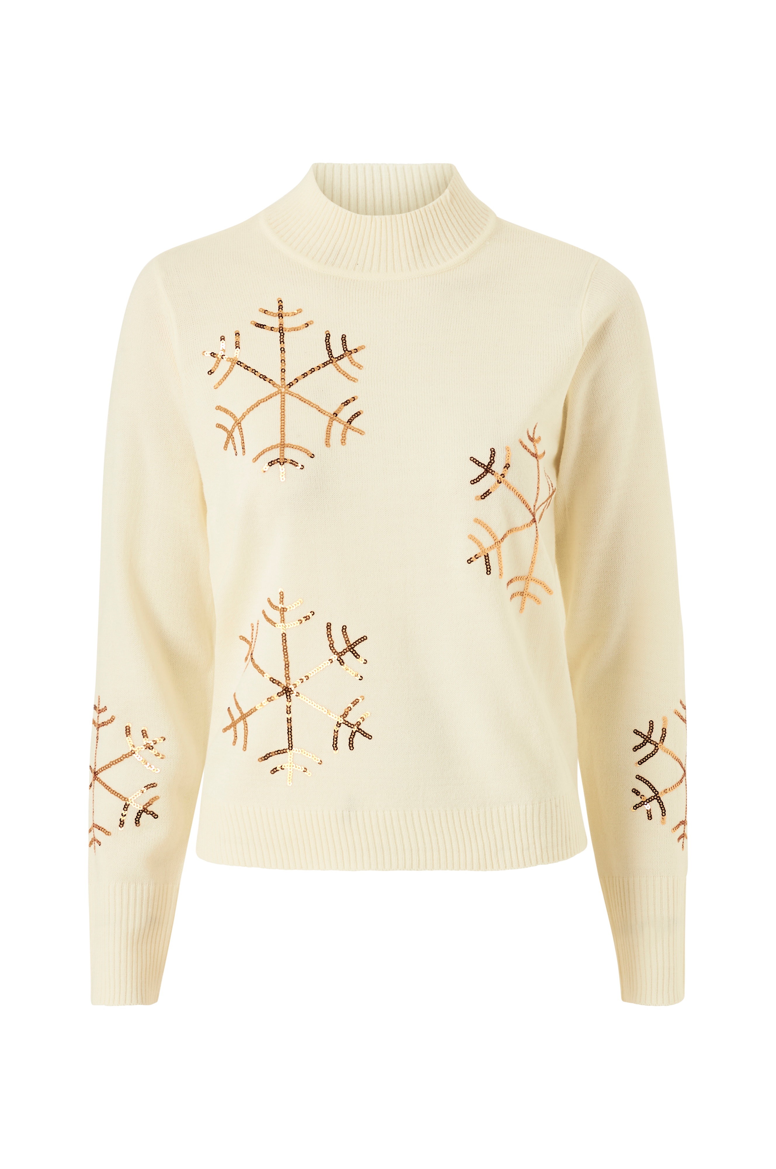 • Tiheäsilmukkainen malli kirjailluilla paljeteilla edessä ja hihoissa