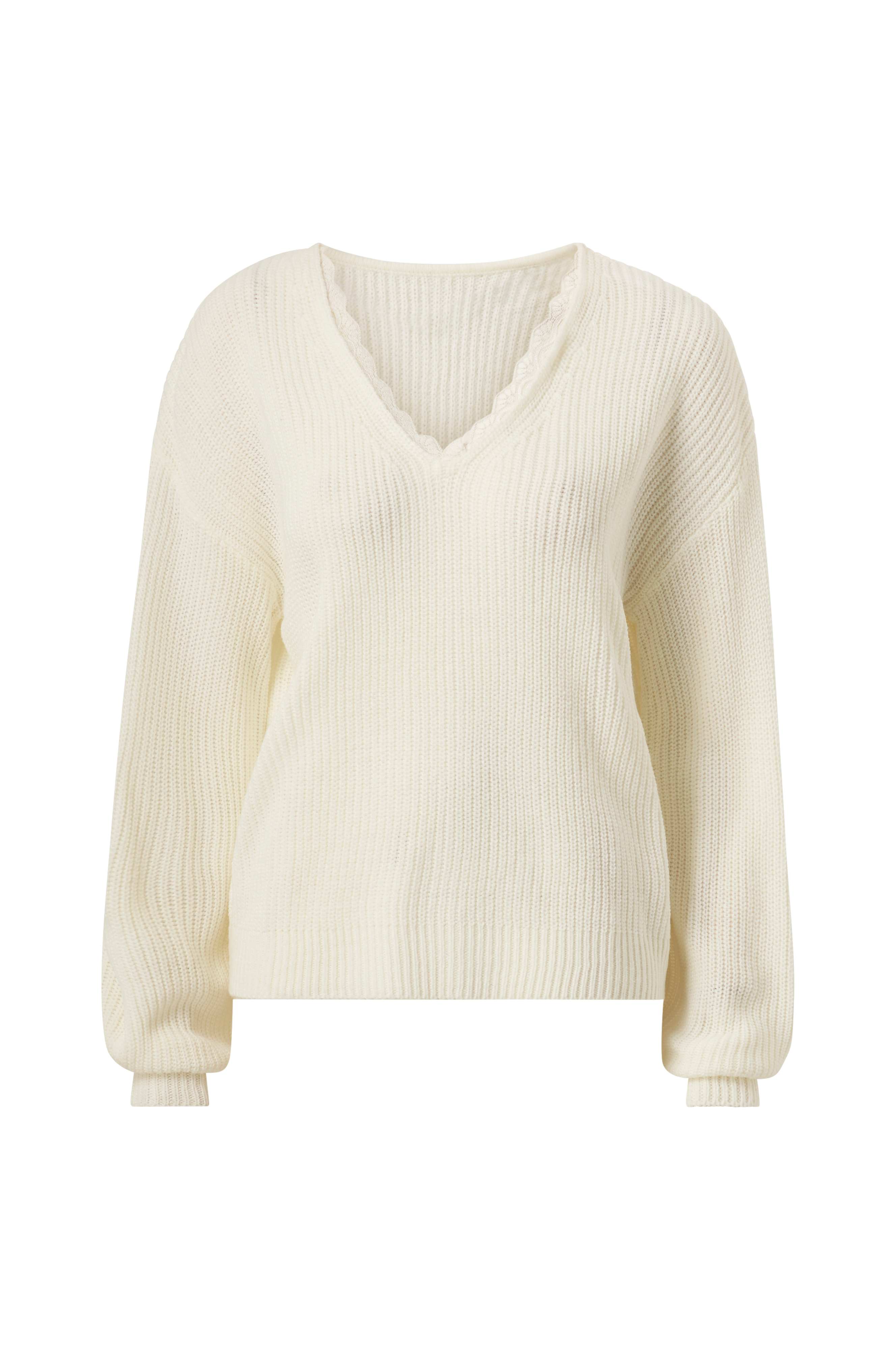 • Neulottu paita• V-kaula-aukko pitsillä• Pudotetut olkapäät