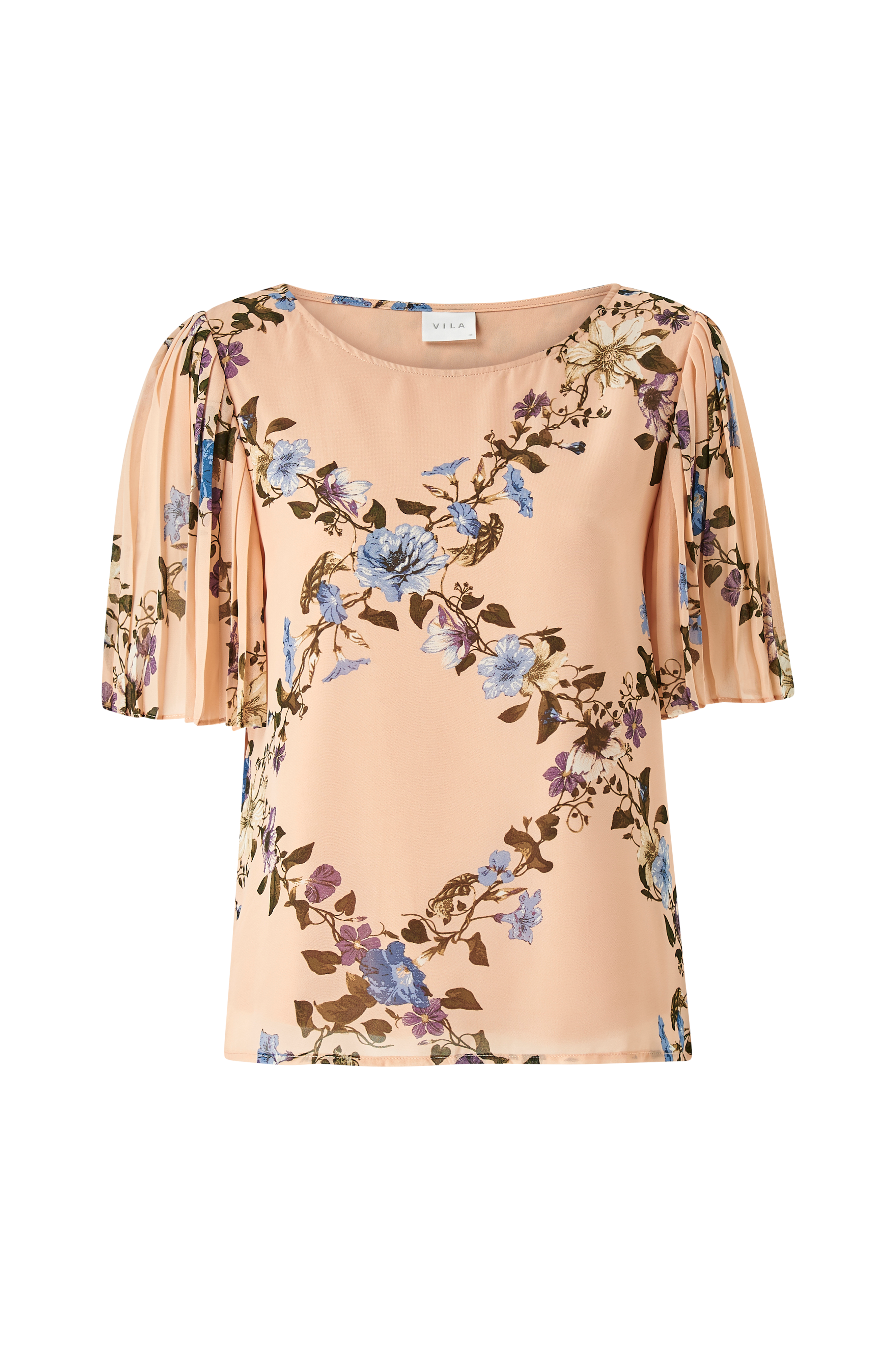 Vila viPenelope 2/4 Top -paita, jossa väljät, pliseeratut perhoshihat. Ohutta materiaalia, jossa trikoovuori.
