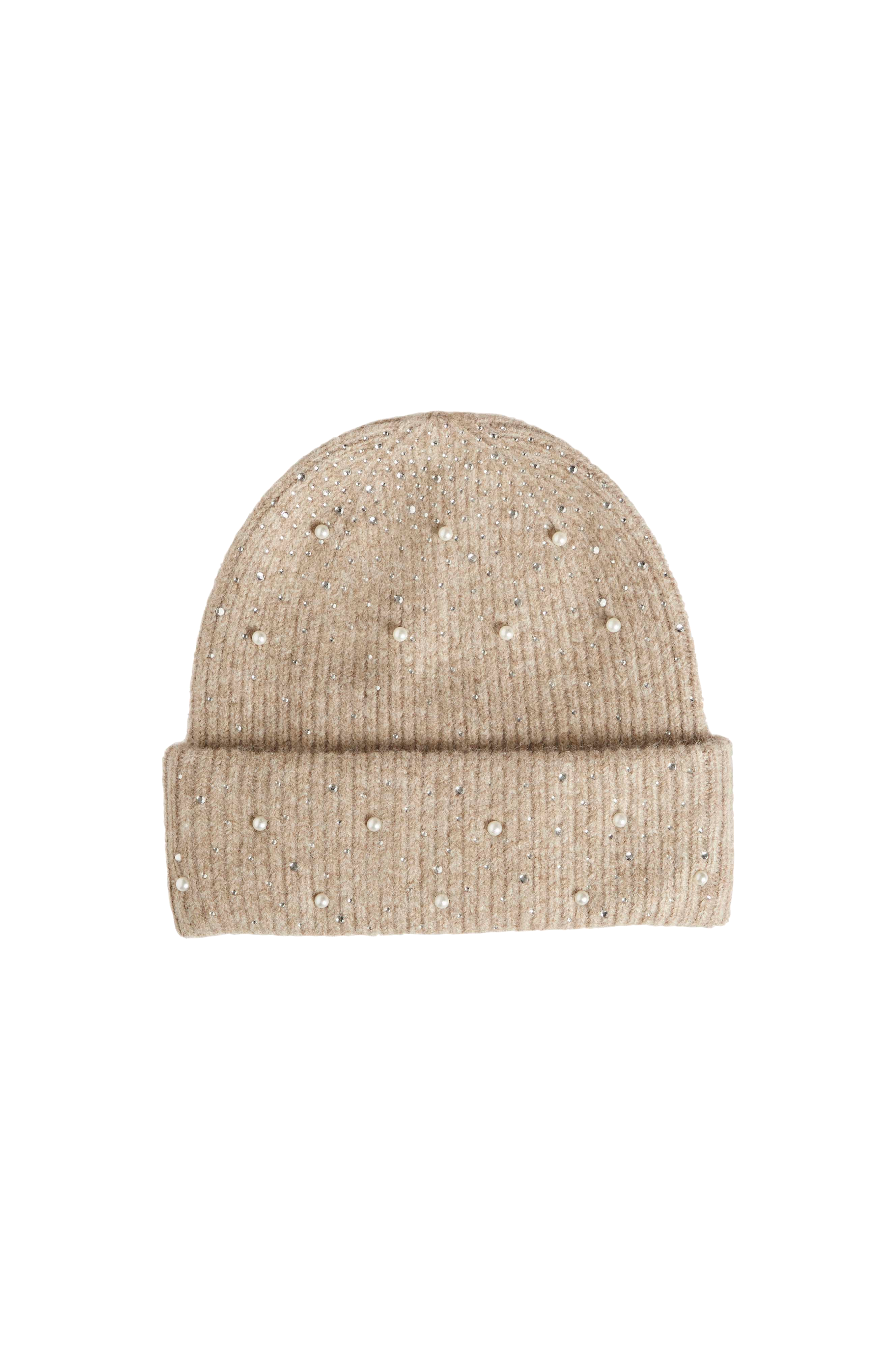 • Pehmeä, neulottu pipo villasekoitteesta• Taitettu helma• Strassit ja helmet ympäriinsä