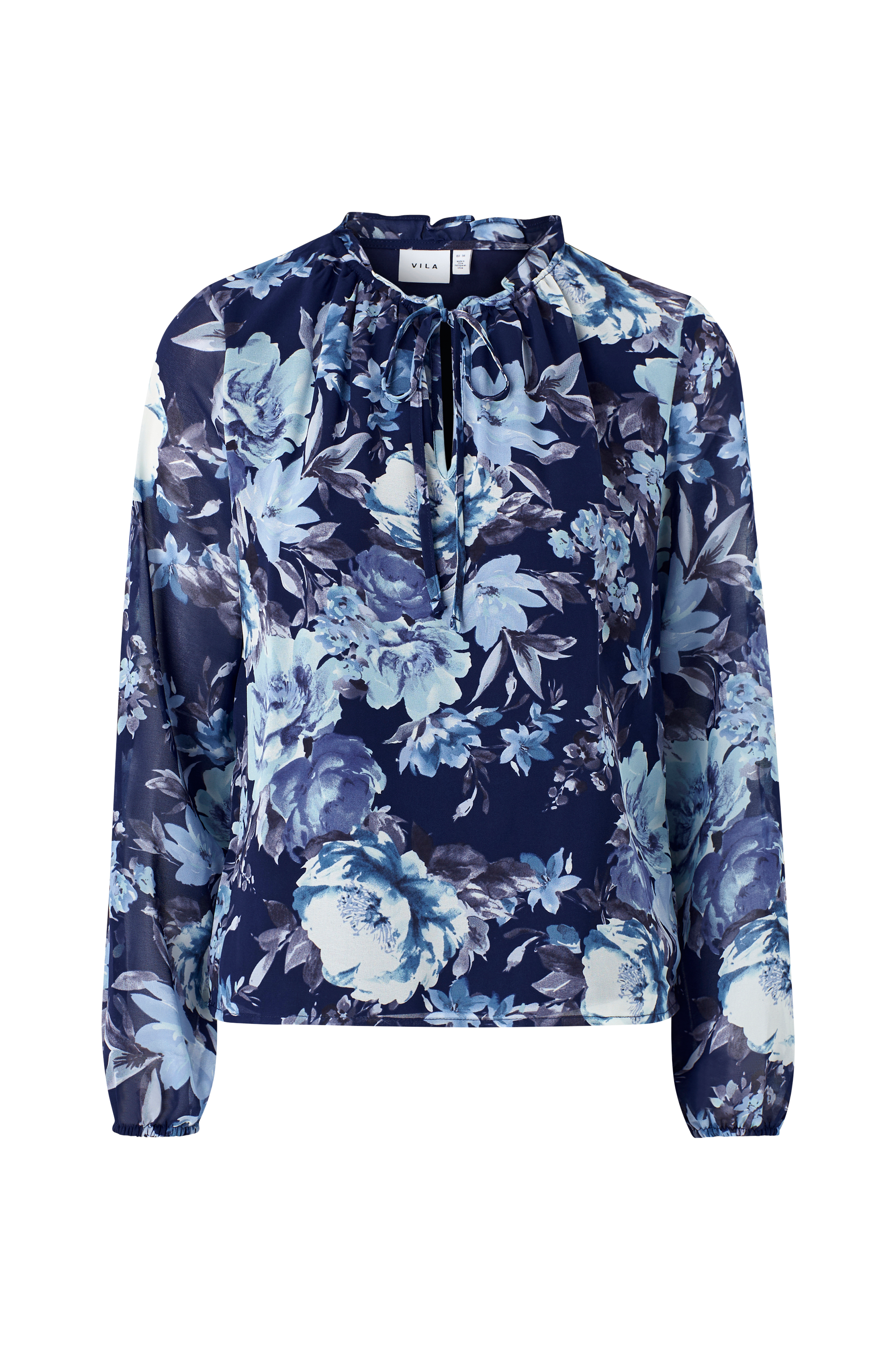 • V-muotoinen kaula röyhelöreunalla kauttaaltaan ja nyöreillä