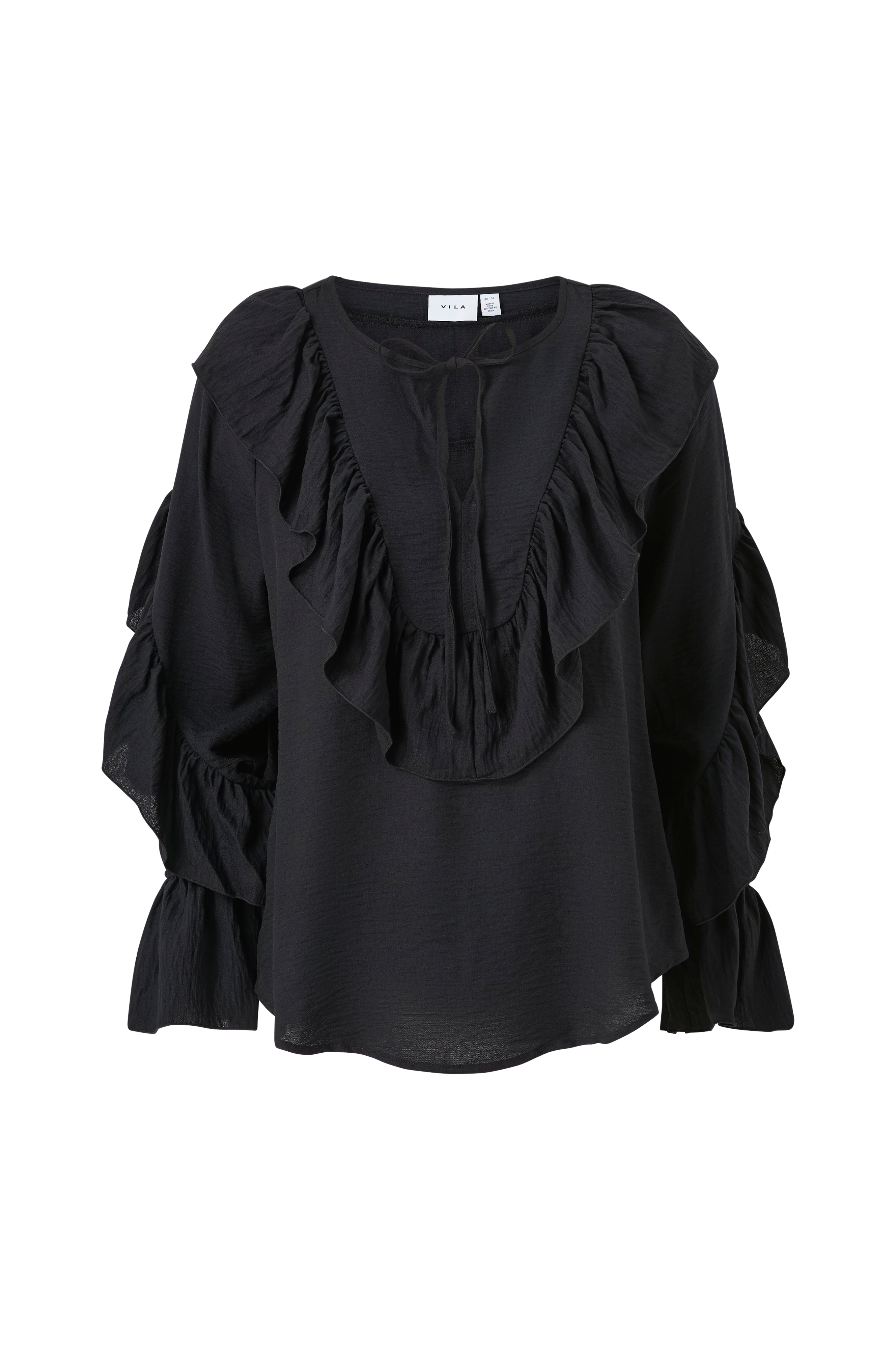 • Pusero röyhelöillä• Halkio nyörillä kaula-aukossa• Pitkät hihat röyhelöillä• Laatu sommitelmalla