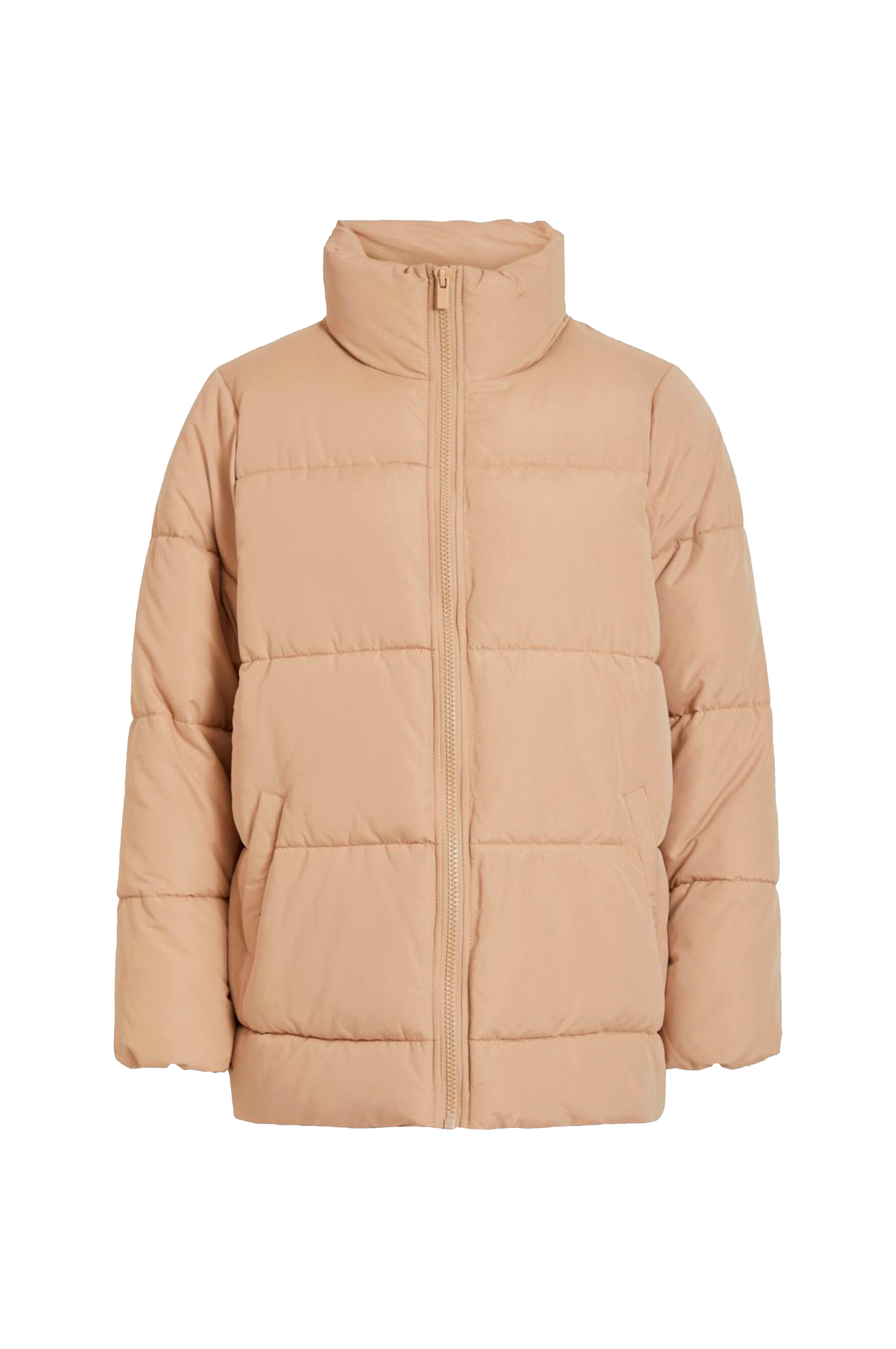 Vila viTrust Volume Jacket -takki. Topattu oversize-malli, jossa vetoketju ja etutaskut. Korkea pääntie ja hihansuissa piilokuminauha. Takki on takaa hieman pidempi. Pituus edestä n. 72 cm koossa 36.