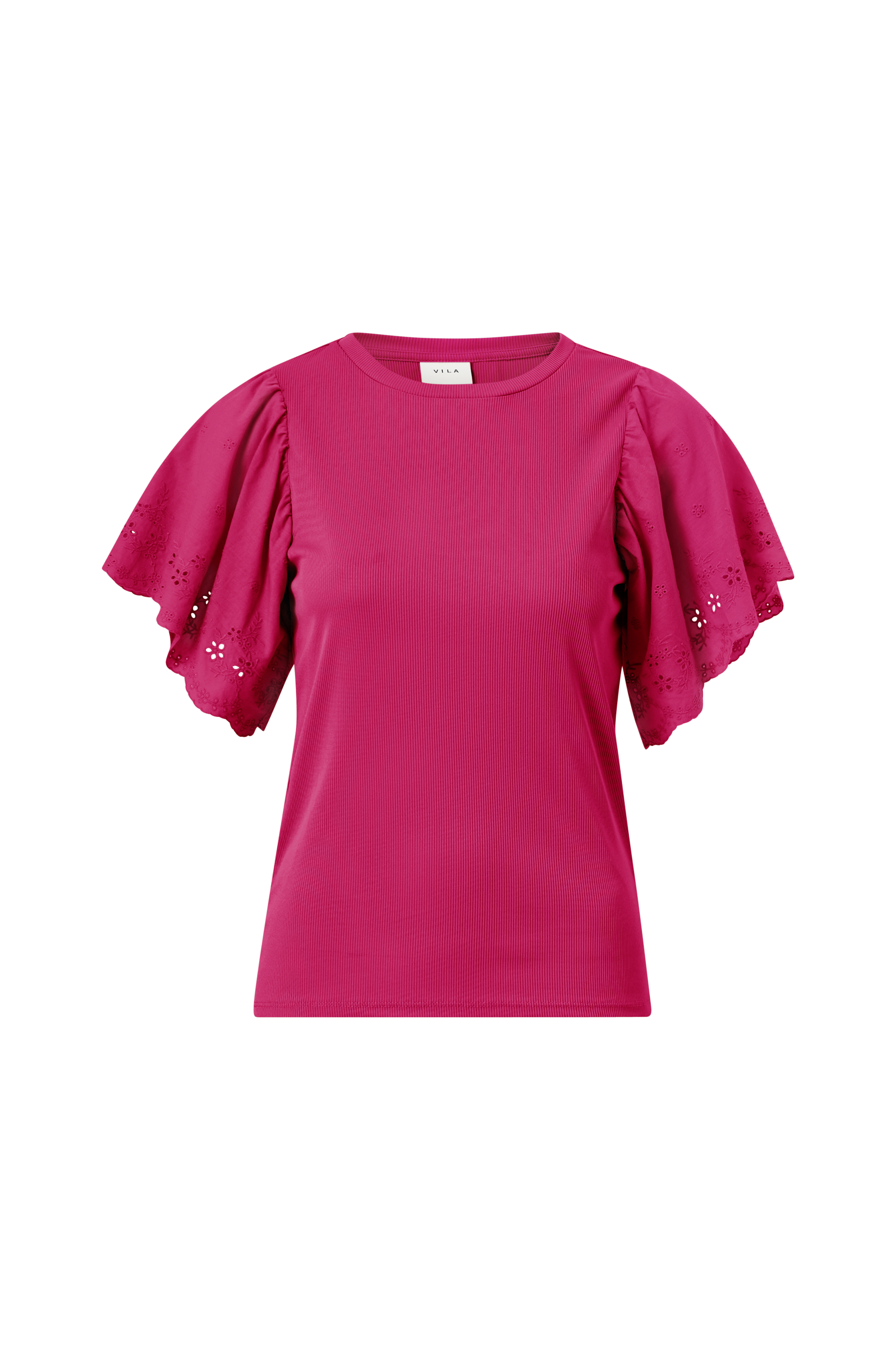 • Toppi ribatusta trikoosta• Perhoshihat kirjaillulla reikäkuvioinnilla• Tuote sisältää kierrätettyä materiaalia, jonka käyttö vähentää jätteen määrää ja säästää luonnonvaroja.