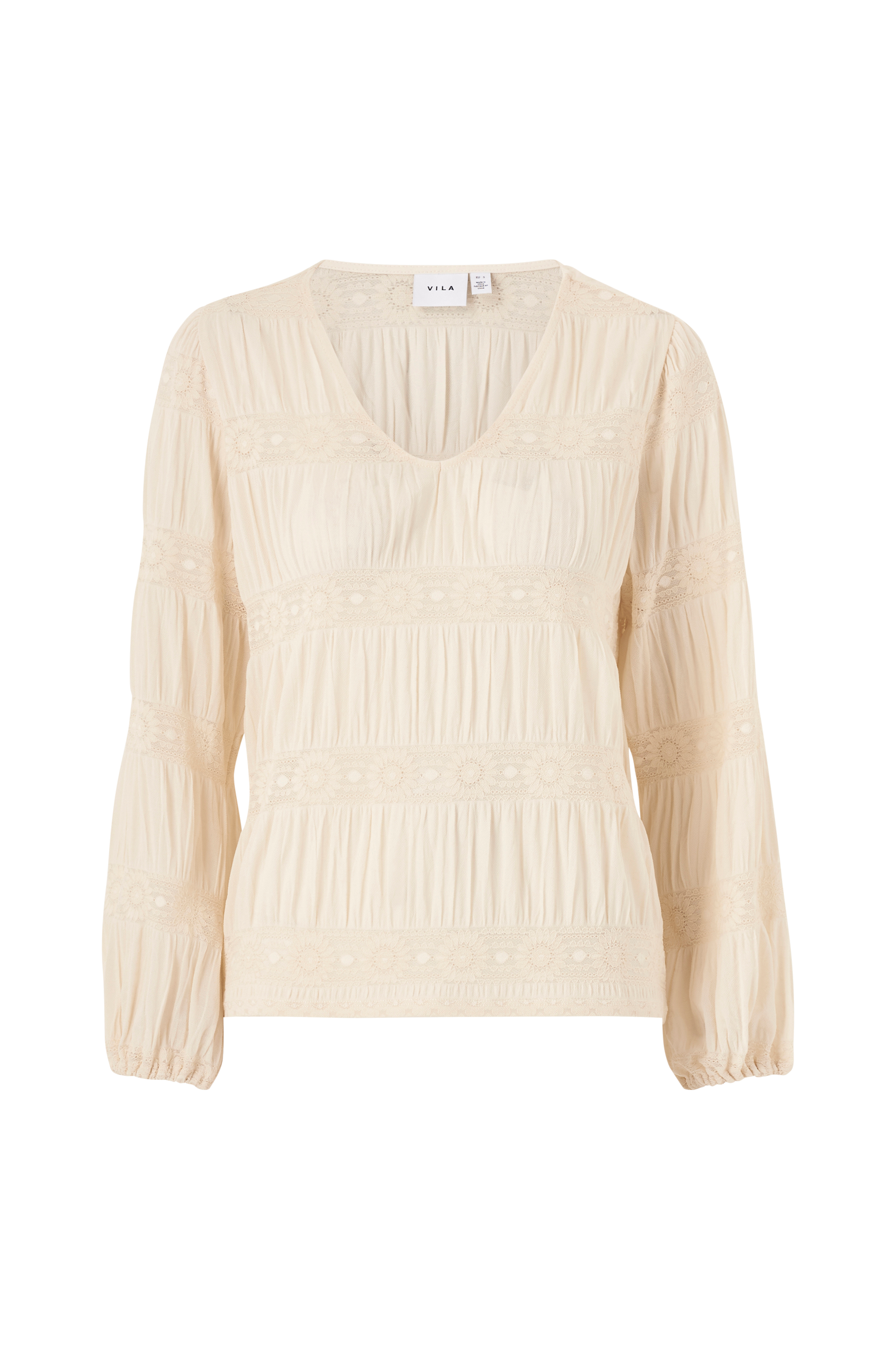 • V-kaula-aukko• Elastiset hihansuut• Pitsikaistaleet