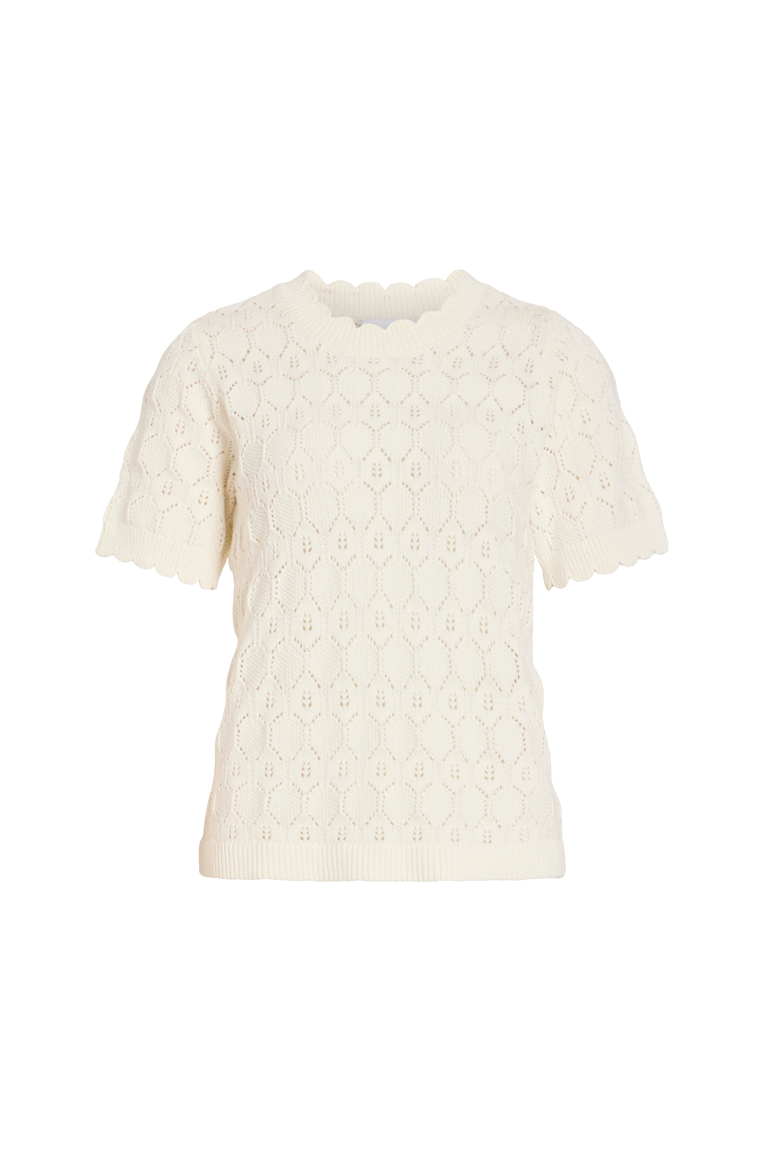 • Kuvioneulottu toppi puuvillasta• Pyöreä kaula-aukko aaltoilevalla, resorimaisella reunalla• Lyhyet hihat aaltoilevalla, resorimaisella reunalla• Ribbiresori alahelmassa