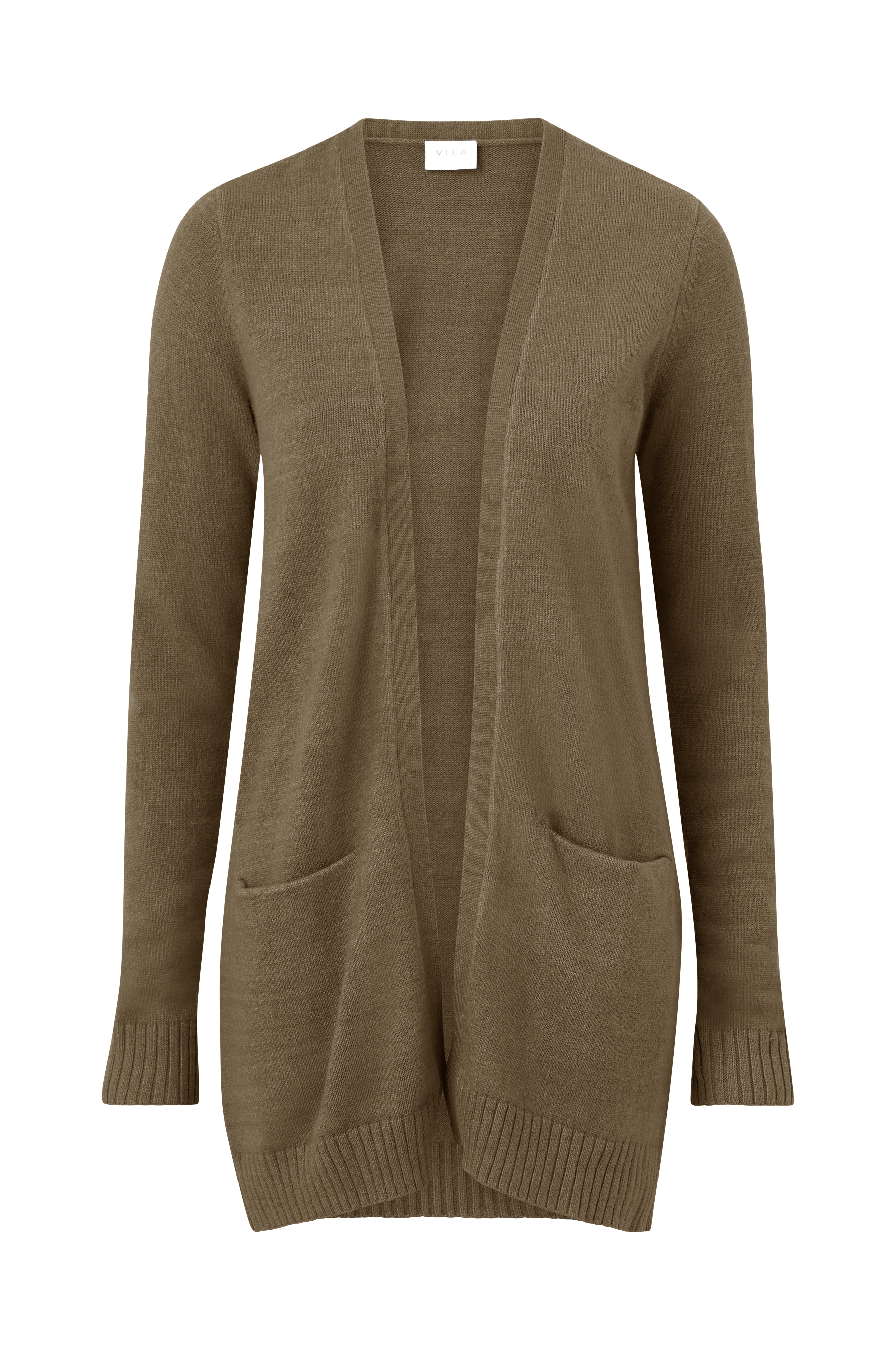 Vila viRil L/S Open Knit -neuletakki. Pitkä ja napiton malli. Neulosreuna edessä. Kaksi upotettua taskua, paksuvakoinen reuna hihansuissa ja helmassa. Pituus n. 84 cm koossa M.
