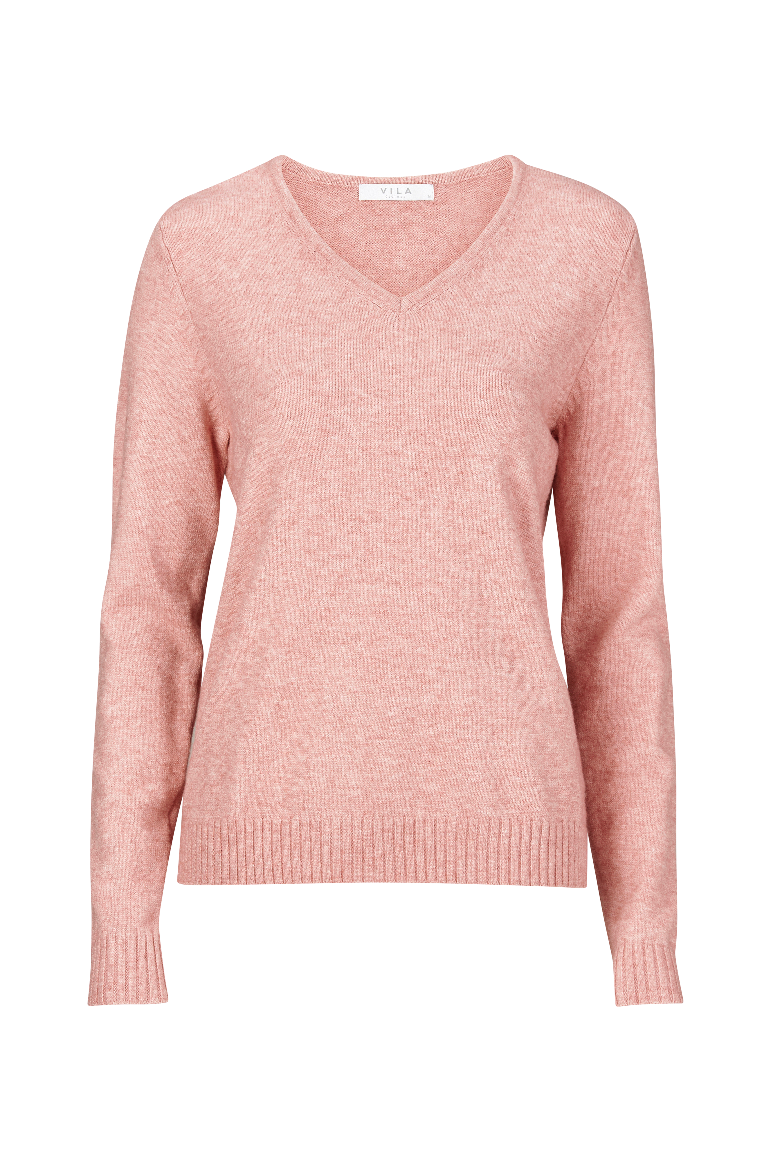 Vila ViRil V-neck Knit Top -neulepusero pehmeää, ohutta neuletta. Joustinneulereuna helmassa ja hihansuissa. V-pääntie. Pituus 67 cm koossa M.