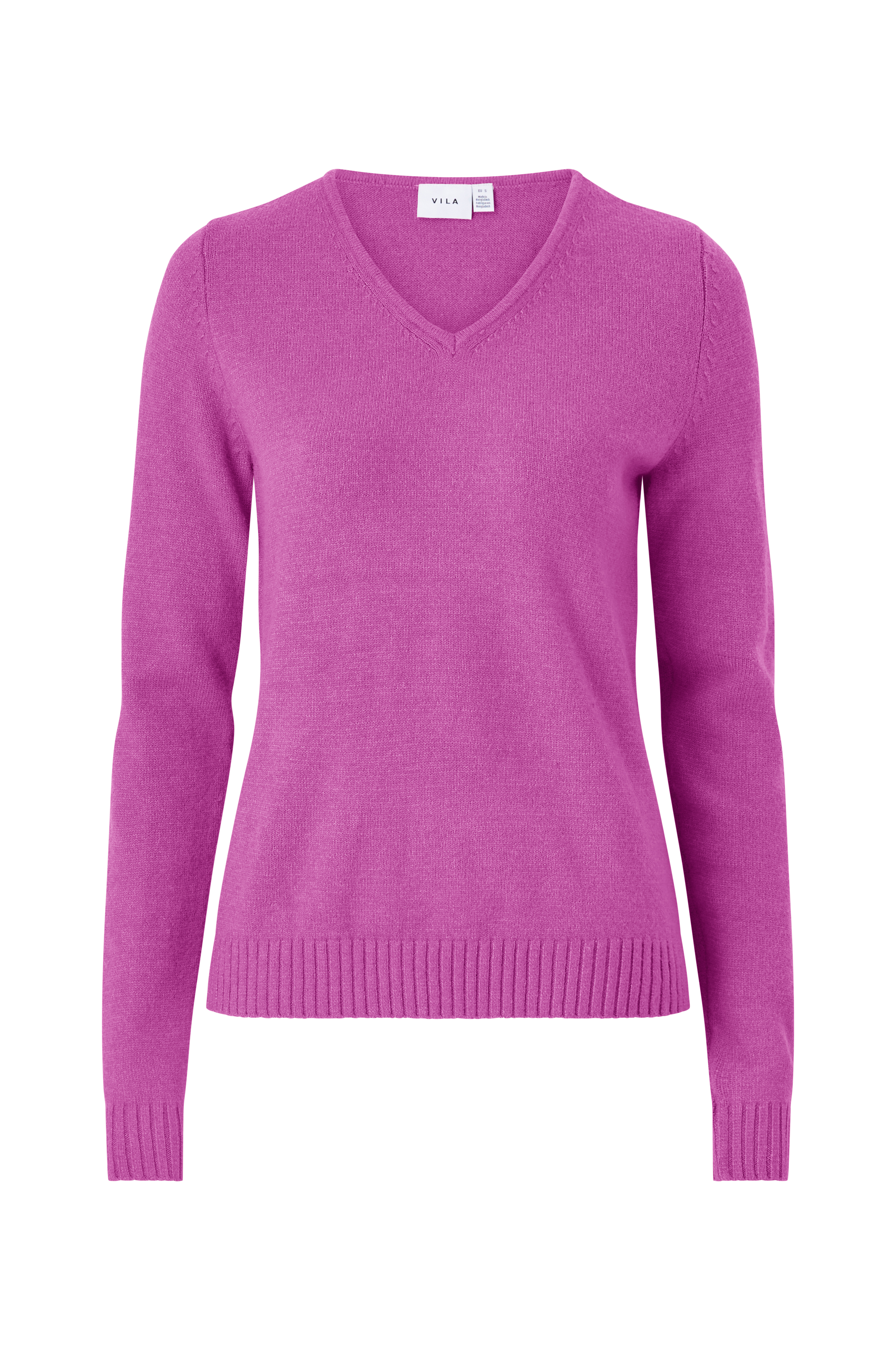 Vila ViRil V-neck Knit Top -neulepusero pehmeää, ohutta neuletta. Joustinneulereuna helmassa ja hihansuissa. V-pääntie. Pituus 67 cm koossa M.