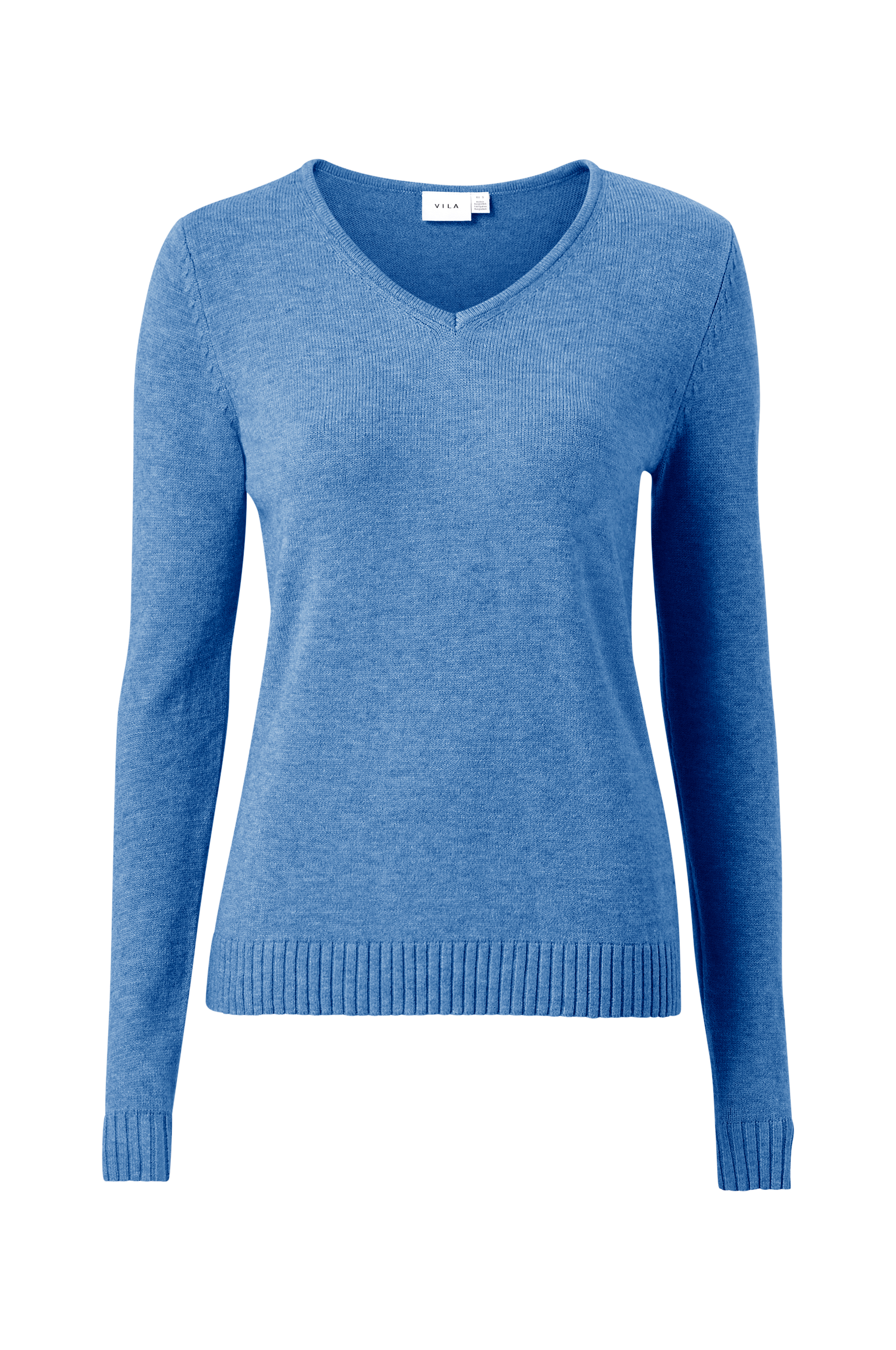 Vila ViRil V-neck Knit Top -neulepusero pehmeää, ohutta neuletta. Joustinneulereuna helmassa ja hihansuissa. V-pääntie. Pituus 67 cm koossa M.