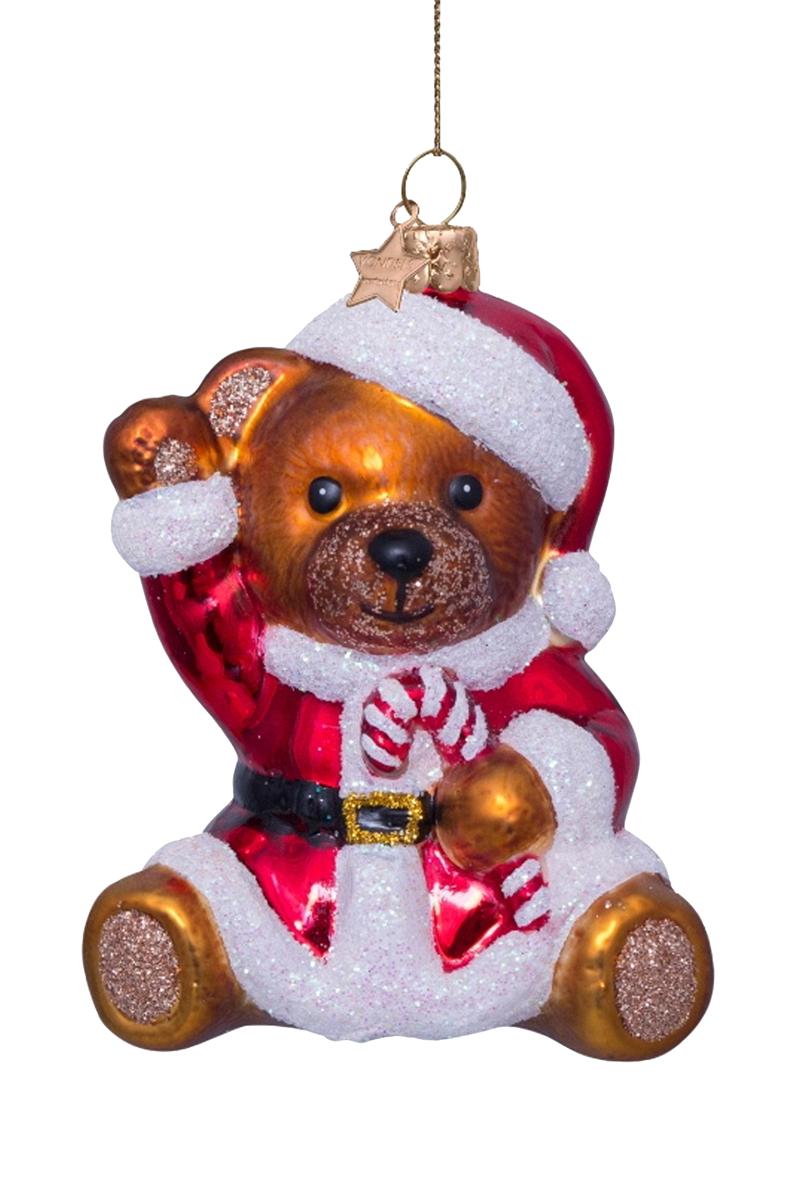 Vondelsin Nallekarhu-joulukoriste on valmistettu lasista ja polyresiinistä. Koriste on suupuhallettu, käsinmaalattu ja huolella koristeltu. Jokainen koriste on ainutlaatuinen. Vondels suosii tuotteissaan ympäristöystävällisiä materiaaleja.