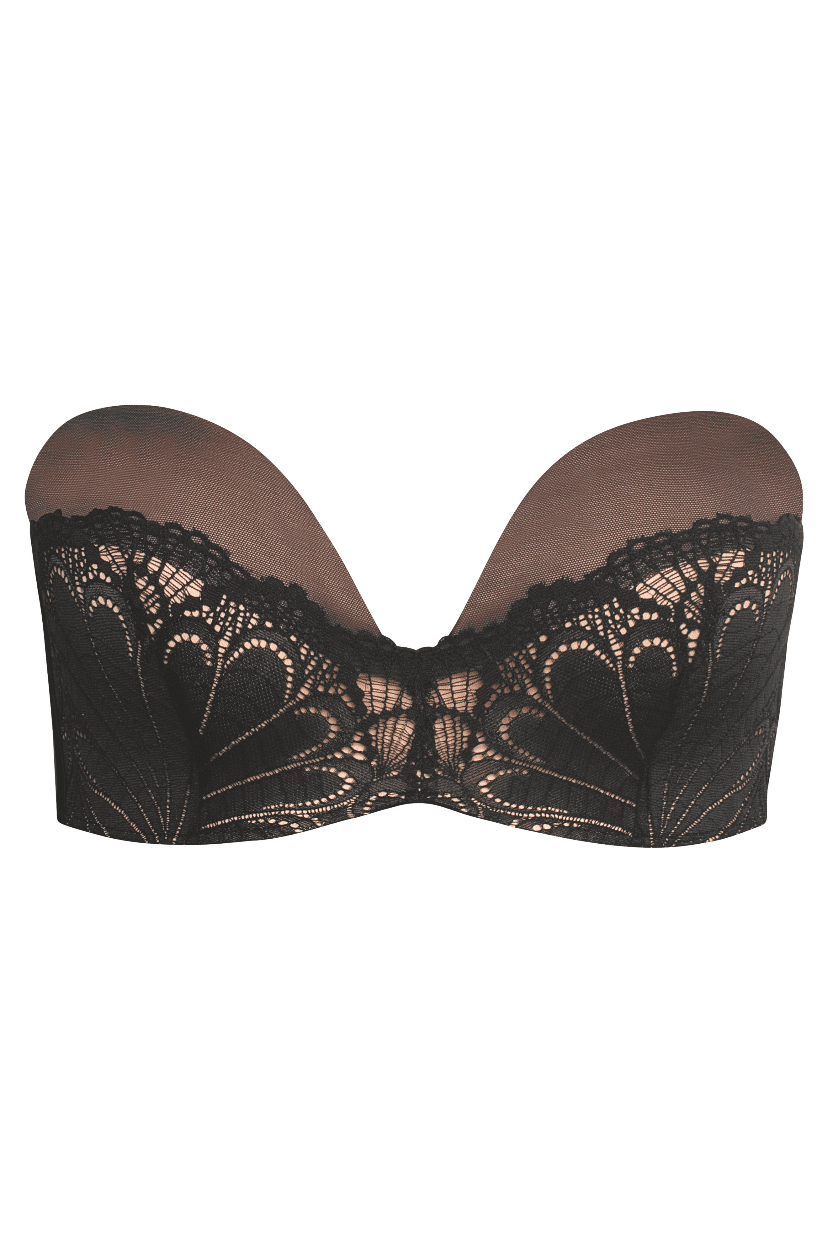 Wonderbra Perfect Strapless Refined -rintaliivit. Olkaimeton balconett-malli, jossa kaunis pitsi. Ainutlaatuisen rakenteen ansiosta liivit istuvat täydellisesti ilman kaaritukia. Silikonireuna sivuilla ja takana.