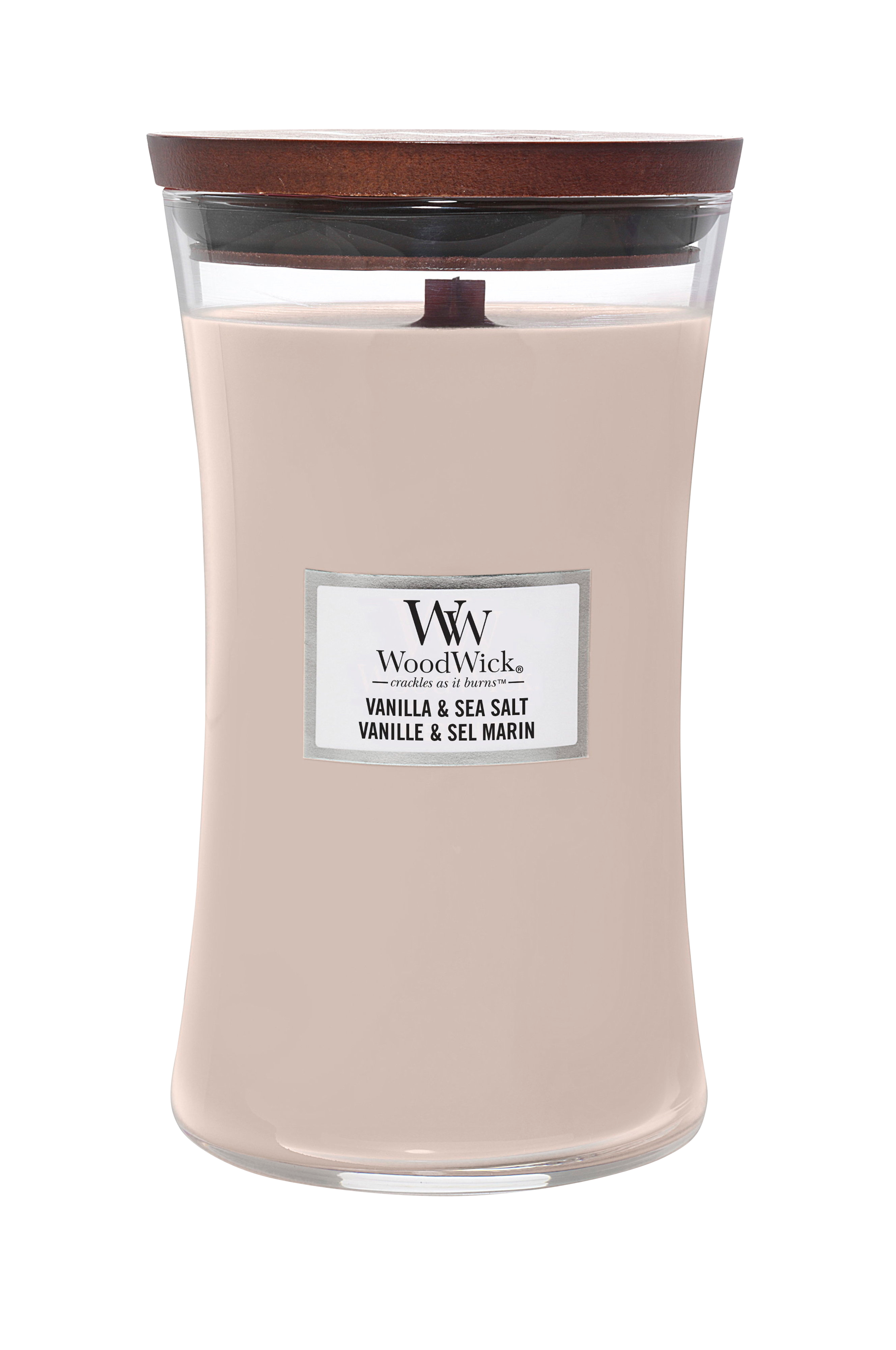 WoodWick®:n suuri tiimalasi-tuoksukynttilä, joka täyttää kotisi hienostuneilla tuoksuilla ja WoodWick®:lle ainutlaatuisen, patentoidun puisen sydänlangan aiheuttamalla viihtyisällä säröllä. Erottuva särinä syntyy PLUSWICK®:stä, innovatiivisesta puukynttilänvarresta, joka tunnelmallisen äänen lisäksi optimoi sekä tuoksun leviämisen huoneeseen että tuoksukynttilän palamisajan.