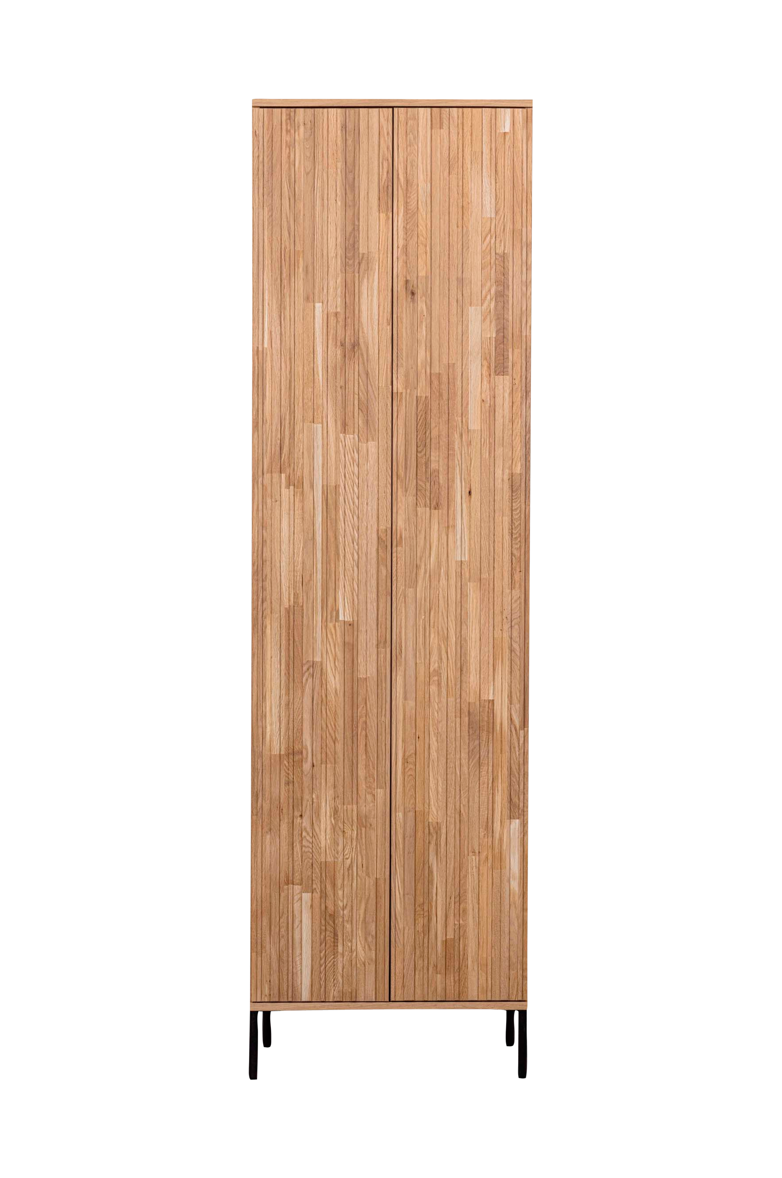 Kaapin korkeus on 210 cm, leveys 60 cm ja syvyys 42 cm. Molemmat kaksi ovea ovat 190 cm korkeita, 30 cm leveitä ja 2 cm paksuja. Vetimettömien ovien juovakuviointi saa aikaan viehättävän omaleimaisen ilmeen. Kaapissa on kolme irrotettavaa hyllytasoa, joiden korkeutta voidaan mukauttaa. Hyllytasot muodostavat viisi hyllytilaa, joiden mitat ovat 37 x 57 x 39 cm (korkeus x leveys x syvyys). Toiseksi alimmassa hyllyosiossa on pehmeästi sulkeutuva laatikko, jonka korkeus on 14,5 cm, leveys 46 cm ja syvyys 30 cm. Metallijalkojen korkeus on 15 cm ja halkaisija 2 cm.