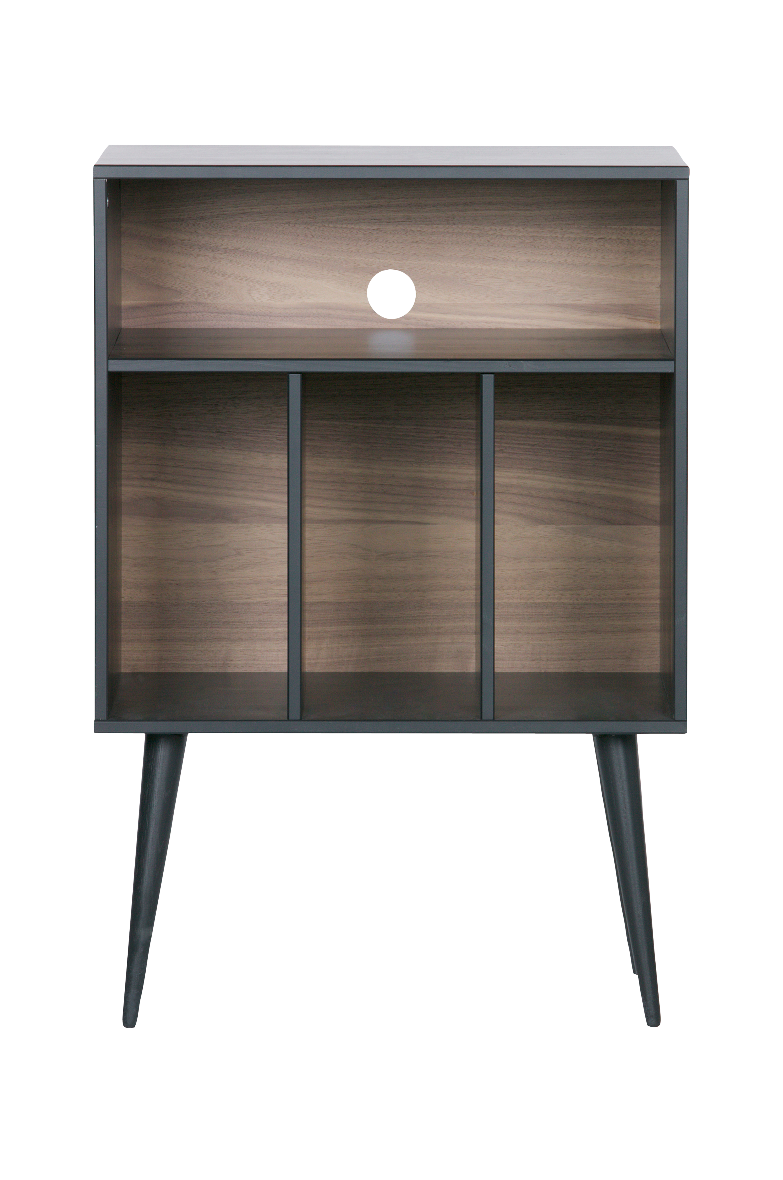 Lipasto on erityisesti muotoiltu LP-levyille: alhaalla kolme lokeroa (K35 x L18 cm).