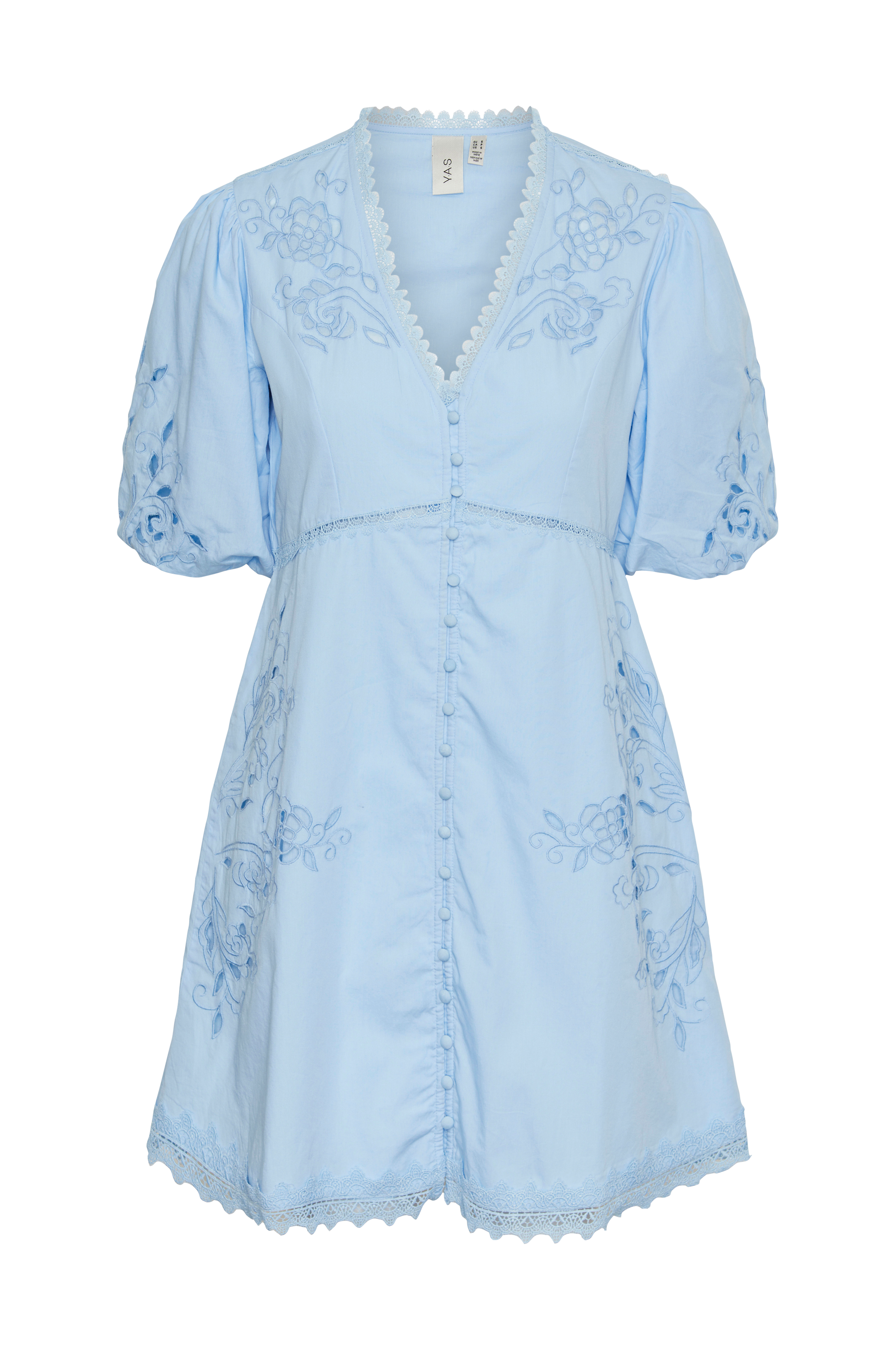 • Lyhyt, levenevä malli• Päällystetyt napit edessä• V-kaula-aukko• Kirjailtu reikäkuviointi• Lyhyet bubble-hihat• Kudottu vuori• Pituus: 92 cm koossa S