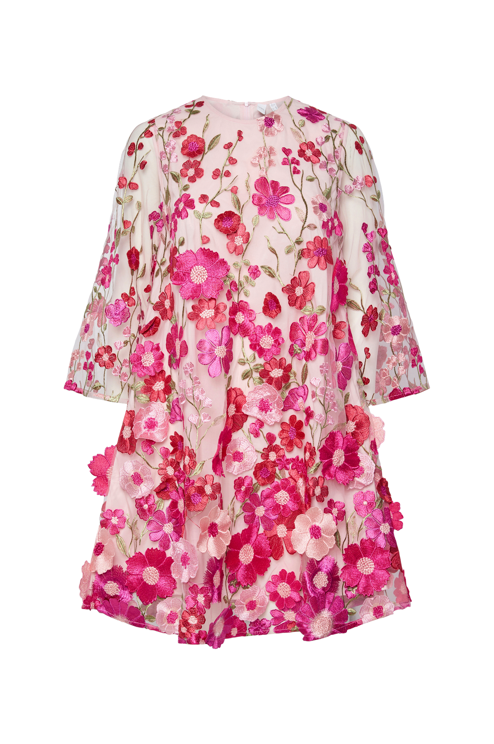 • Vuorattu mekko verkkokankaasta kukka-applikaatioilla kauttaaltaan