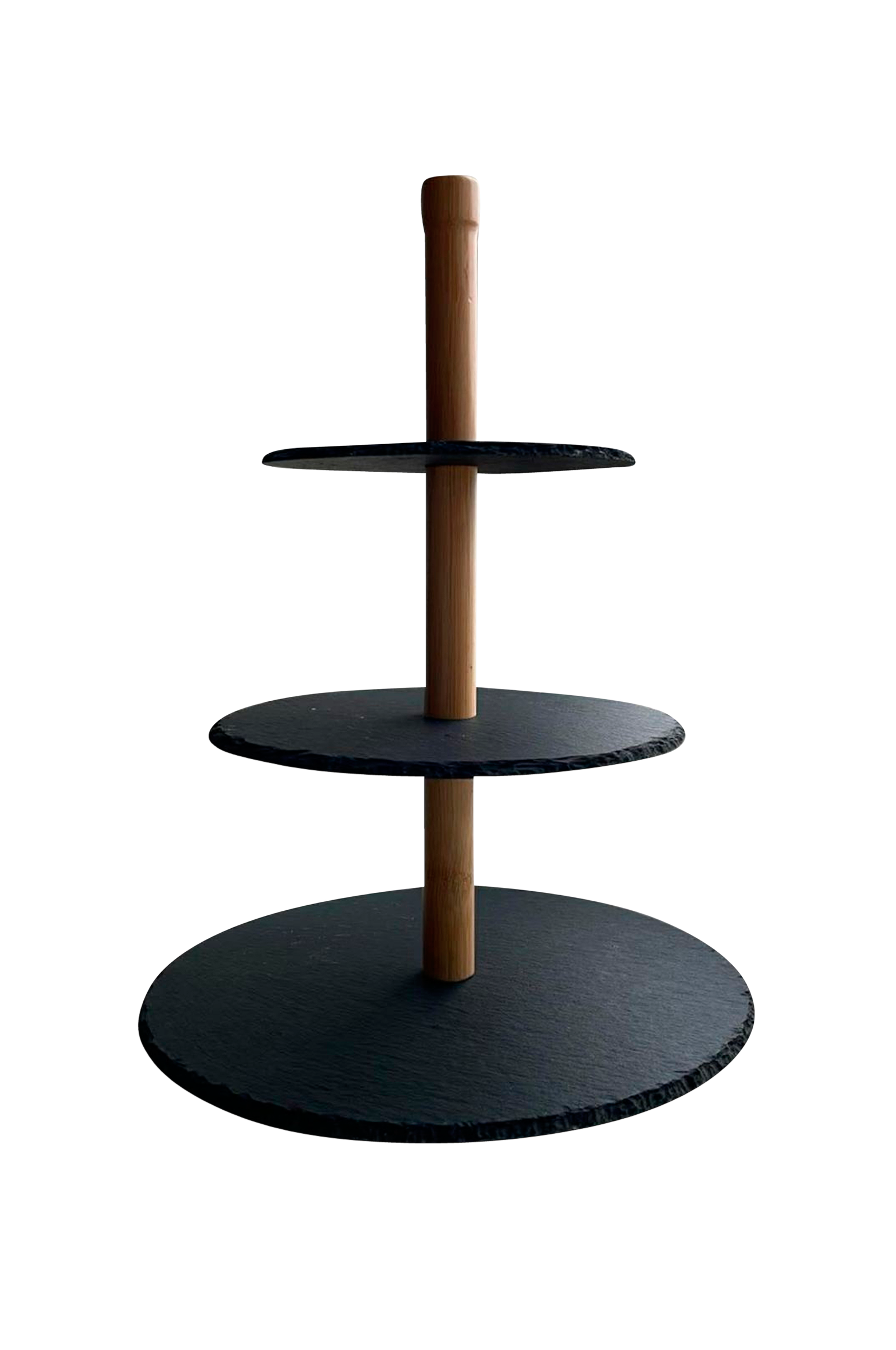 Nosta tarjoilu seuraavalle tasolle tällä tyylikkäällä liuskekivipintaisella porrastetulla kakkulautasella. Lautanen koostuu kolmesta kauniista liuskekivilevystä, joiden luonnollinen rakenne ja mattapinta antavat pöydällesi rustiikkisen ja eksklusiivisen tunnelman. Täydellinen kakkujen, juustojen, hedelmien, praliinien tai pienten voileipien tarjoiluun - sekä jokapäiväiseen käyttöön että juhliin. Jalusta tummaa puuta. Tumman liuskekiven ja puun yhdistelmä antaa modernin ilmeen.