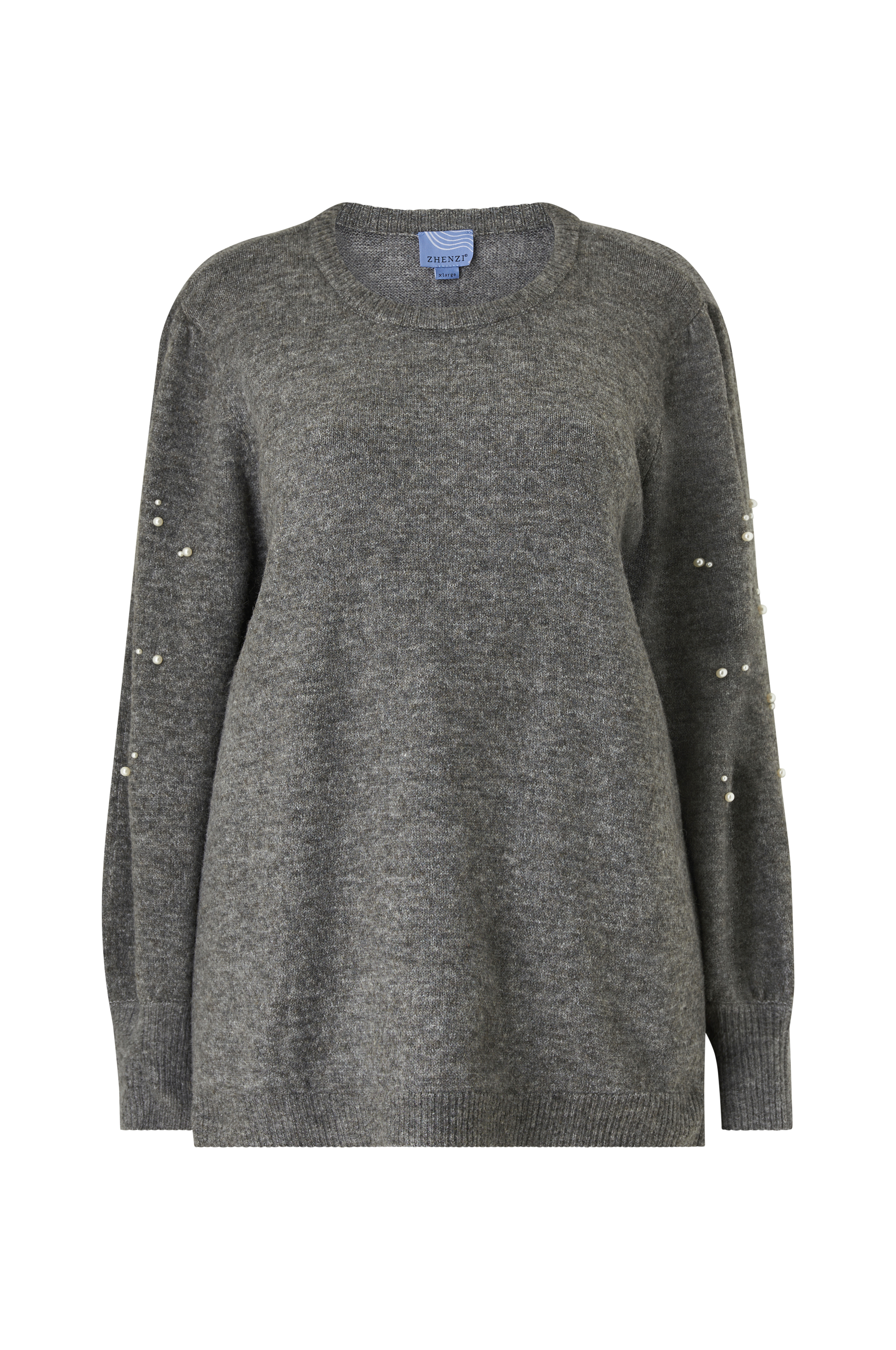 • Plus-koot• Leveä, suora malli• Kaula-aukko ribbineuloksella• Pitkä, leveä hiha kirjailluilla helmillä• Ribbineulos hihansuissa ja alahelmassa