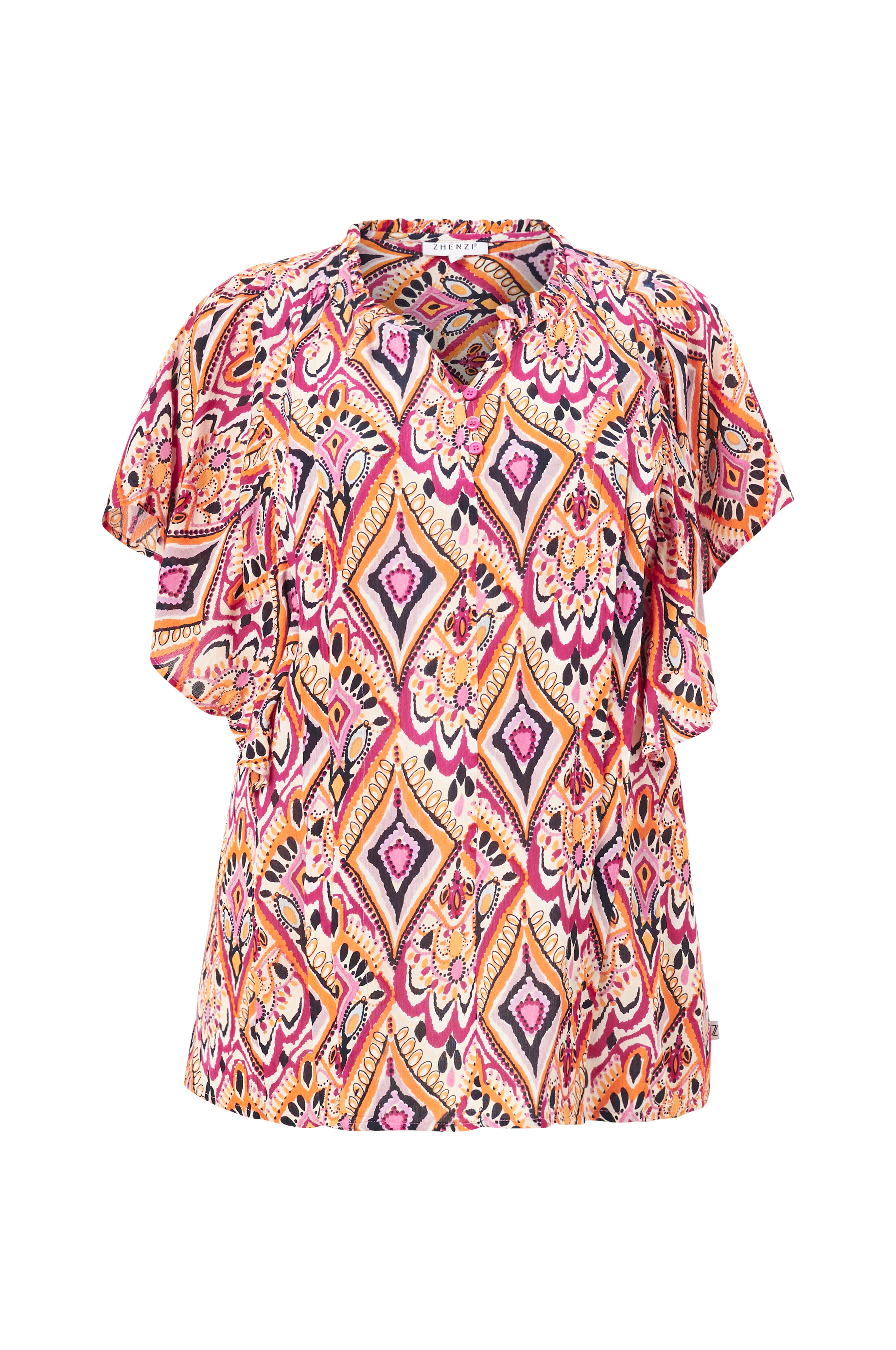 • V-kaula-aukko napeilla• Röyhelöreuna kaulassa• Leveät röyhelöhihat• Löysä istuvuus• Vekit edessä• Plus-koot