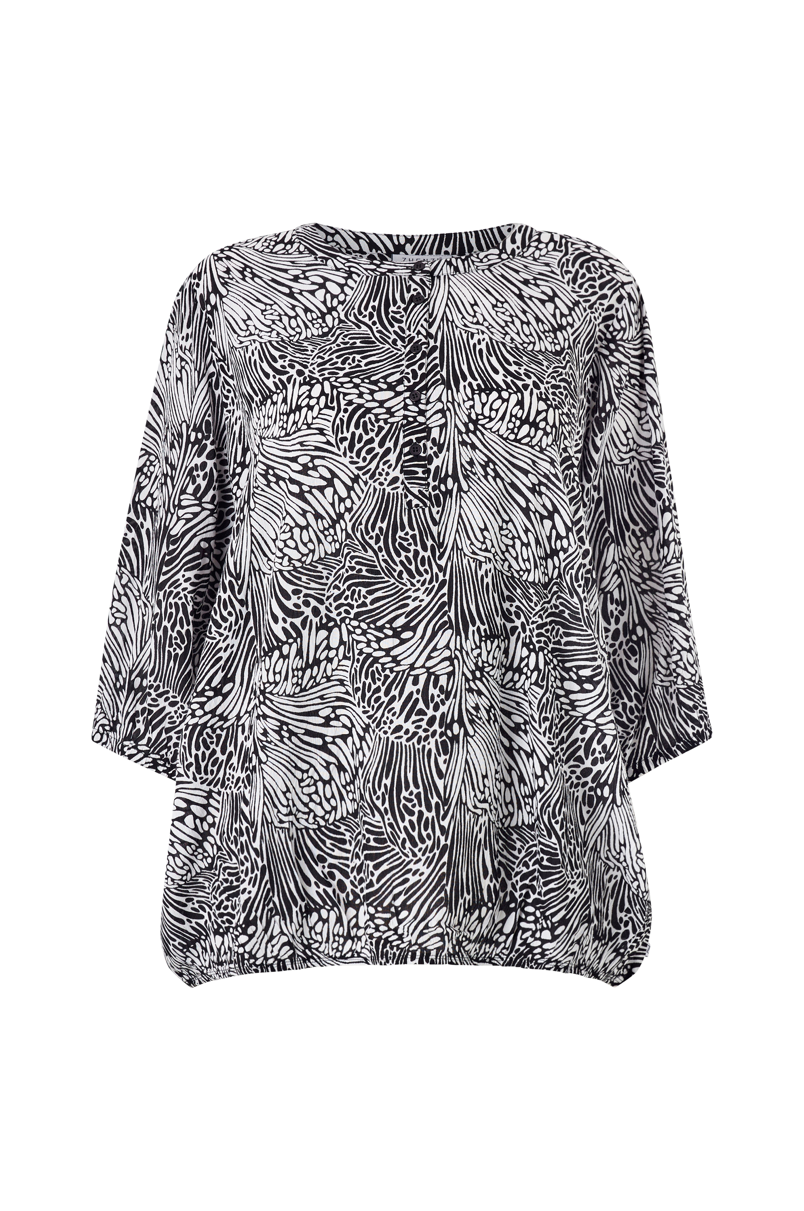 • Pyöreä pääntie napeilla• Hieman lyhemmät hihat joustavilla hihansuilla• Joustonauha alahelmassa• Plus-koot