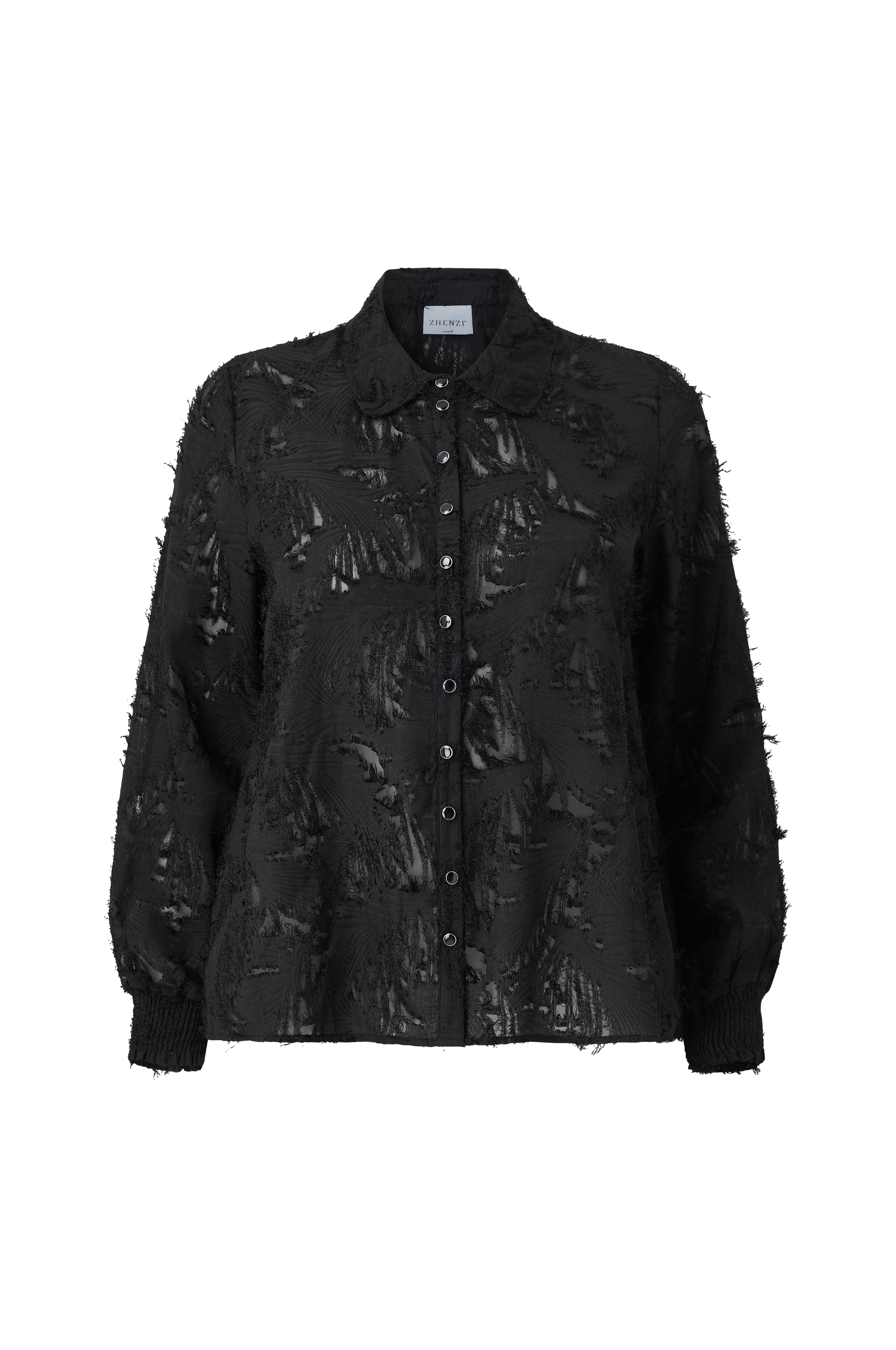 • Läpikuultava pusero koristeellisilla langoilla• Kaulus• Rypytys hihansuissa• Nappikiinnitys• Plus-koot