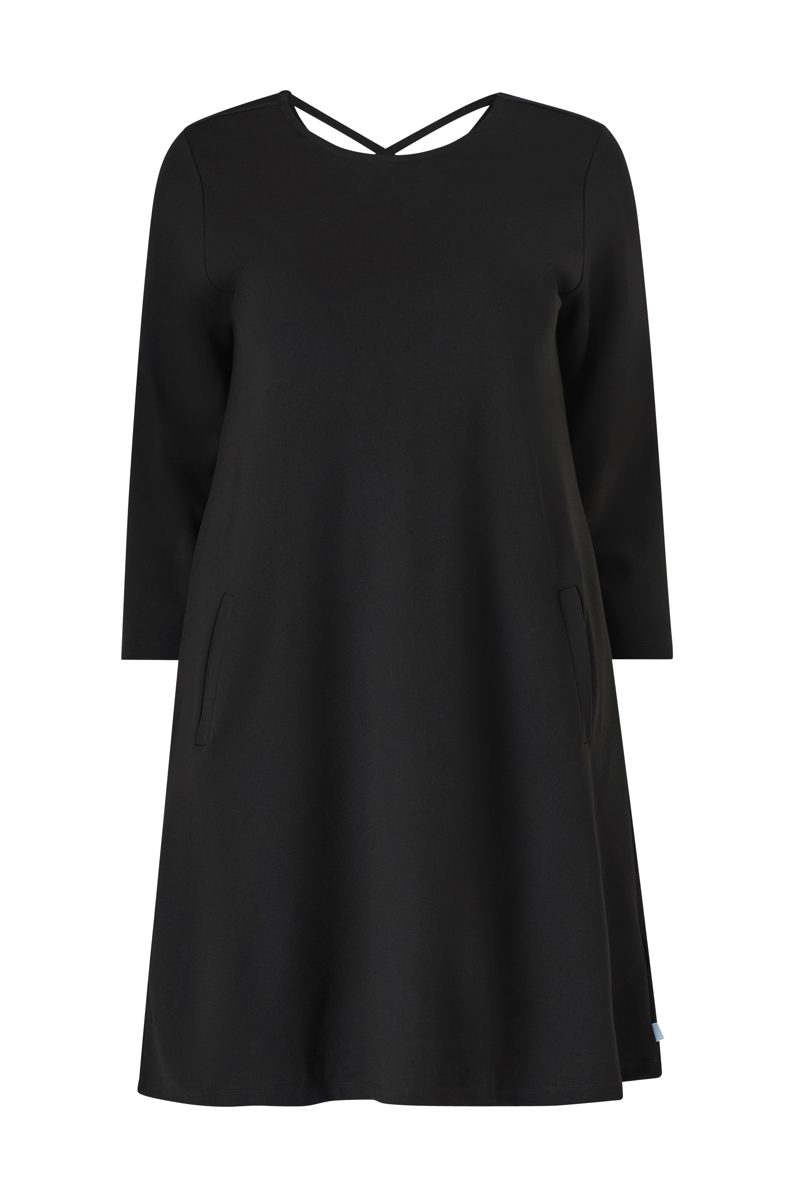 • Plus-koot• Lievästi levenevä malli trikoosta• Pyöreä pääntie v-kaula-aukolla ja ruudullisilla hihnoilla niskan kohdalla• Suora, pitkä hiha• Upotetut taskut• Pituus: 103 cm koossa S