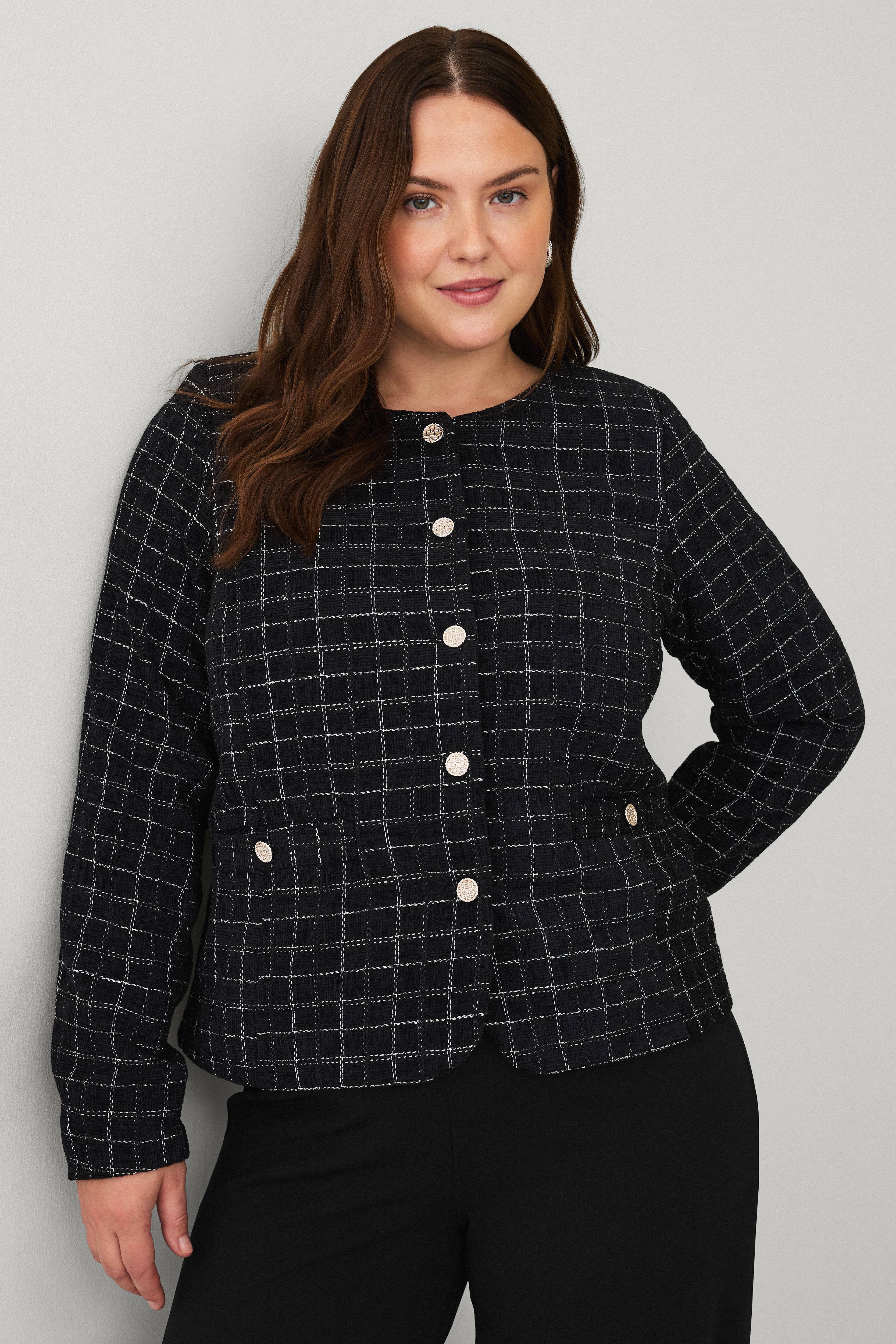 • Lyhyt, ruudullinen bleiseri bouclé-kankaasta