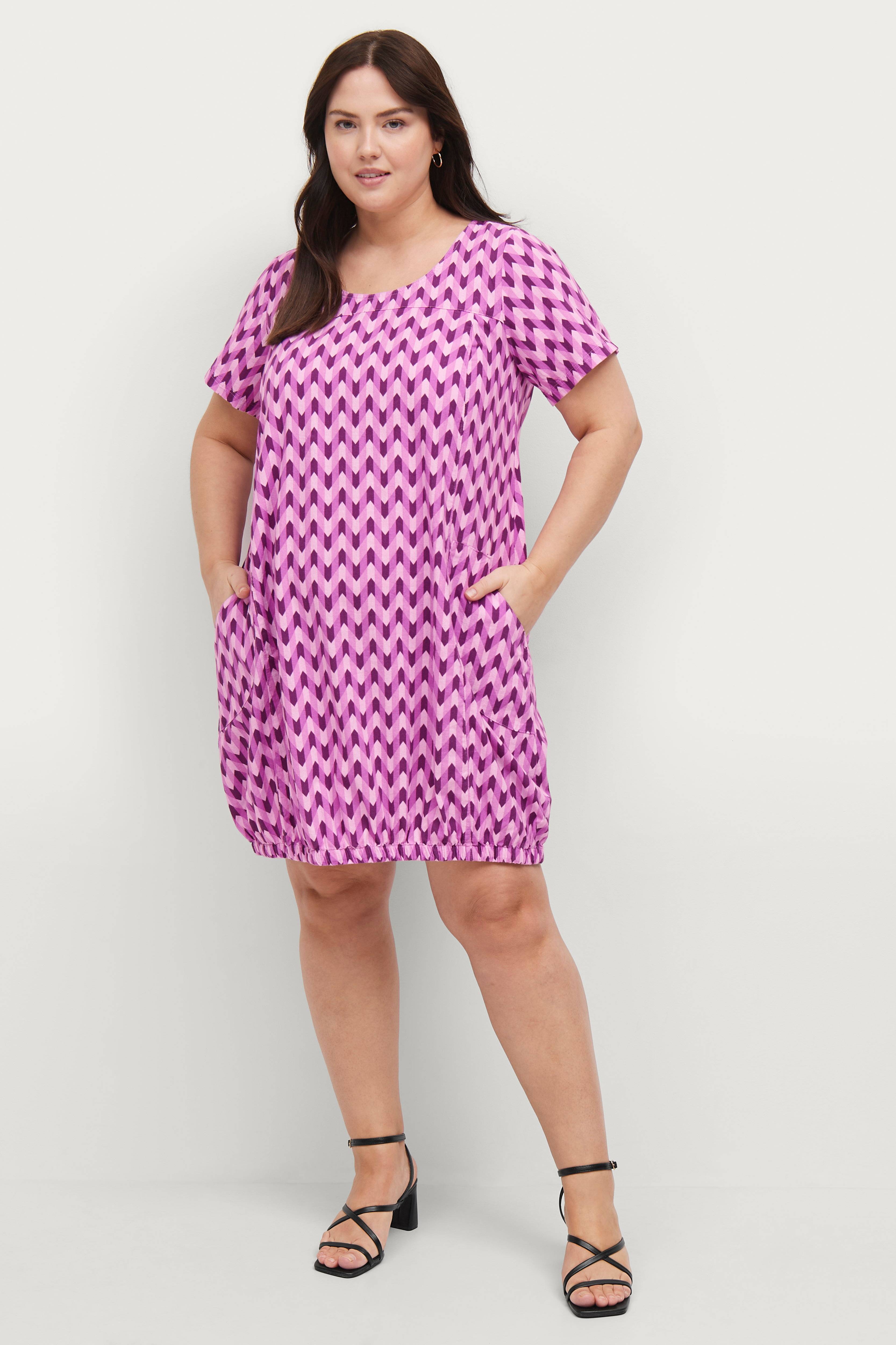 Lyhythihainen mekko kuviollista puuvillaa. Taskut edessä ja joustava alareuna. Pituus n. 95 cm koossa S.