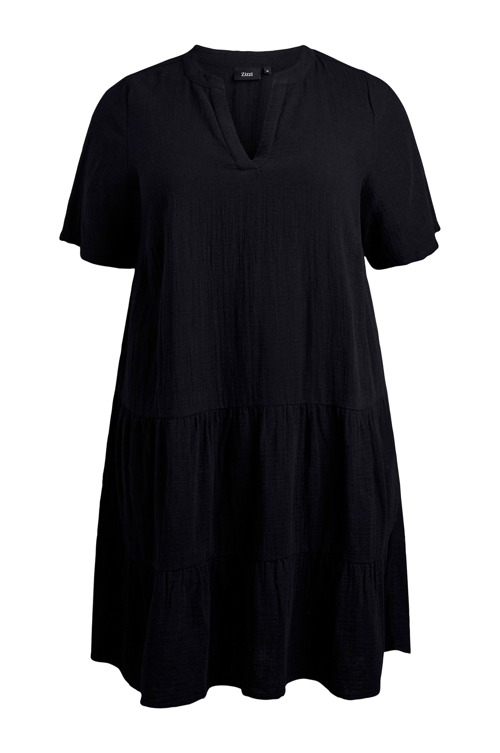 • Plus-koot• Levenevä malli• Pyöreä pääntie halkiolla edessä• Lyhyt hiha• Röyhelöt alhaalla• Pituus: 102 cm koossa S