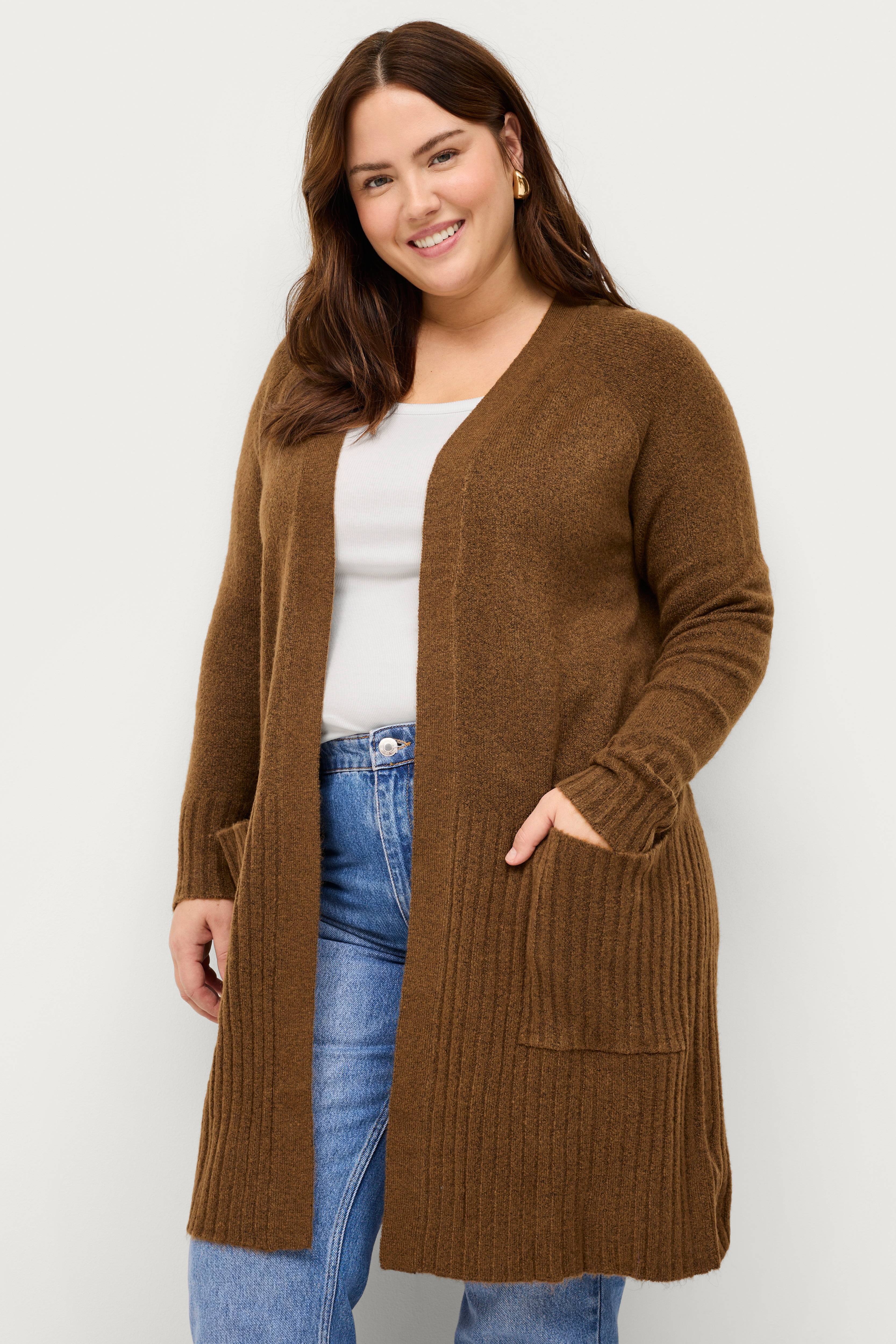 Upea pitkä neuletakki. Lämmitysmateriaali.