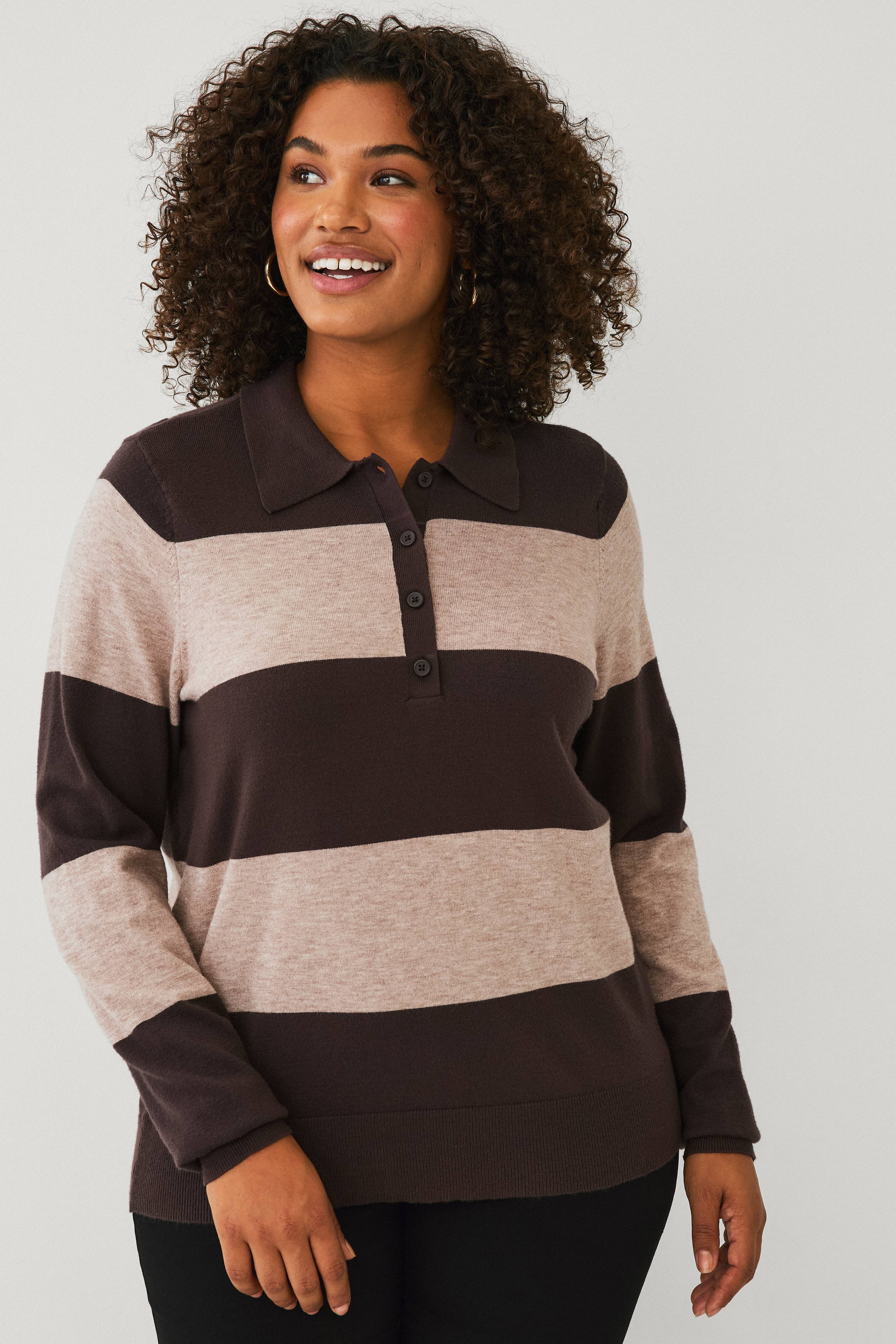 • Tiheäsilmukkainen, raidallinen pulloveri