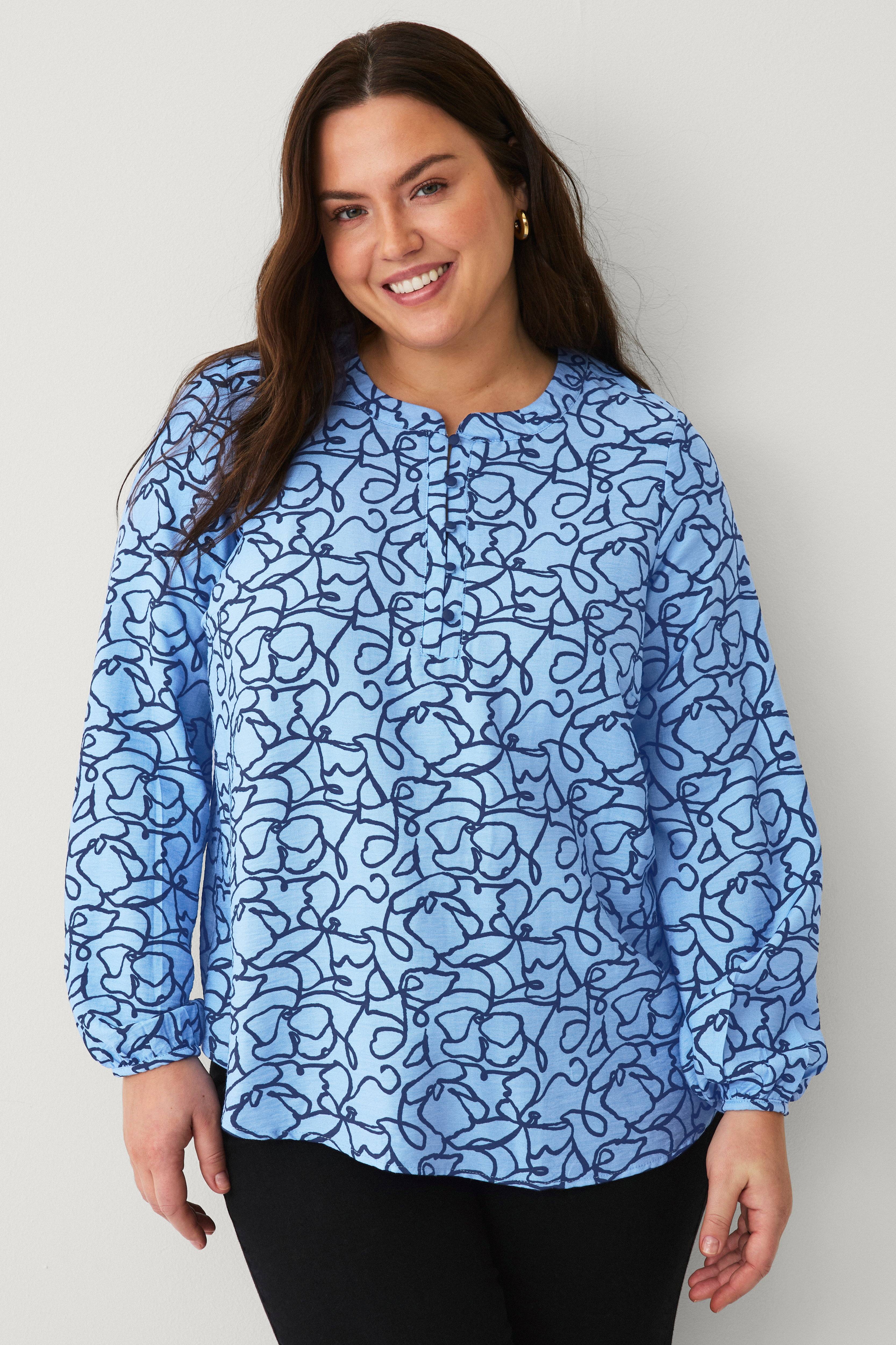 • Plus-koot• Leveä, suora malli• Pyöreä pääntie pienellä reunalla• Lyhyt nappietupuoli silmukkasulkemisella ja päällystetyillä napeilla• Pitkä hiha ohuella hihansuulla• Lievästi pyöristetty helma