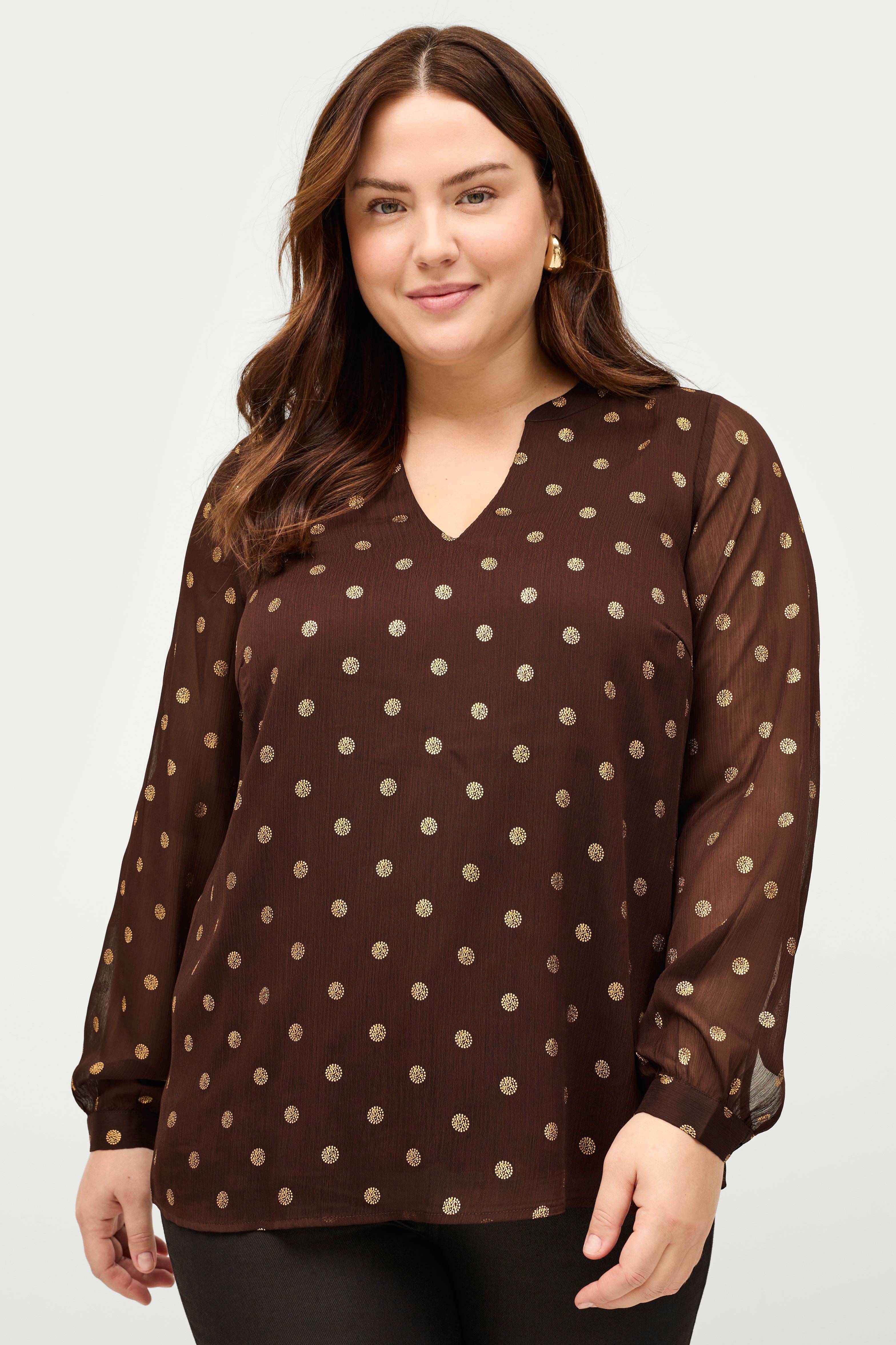 • Vuorattu pusero• Painettu, kullanvärinen kuviointi• Vuoraamattomat, puoliksi läpinäkyvät hihat• Ohut hihansuu yhdellä napilla• V-kaula-aukko• Suora istuvuus