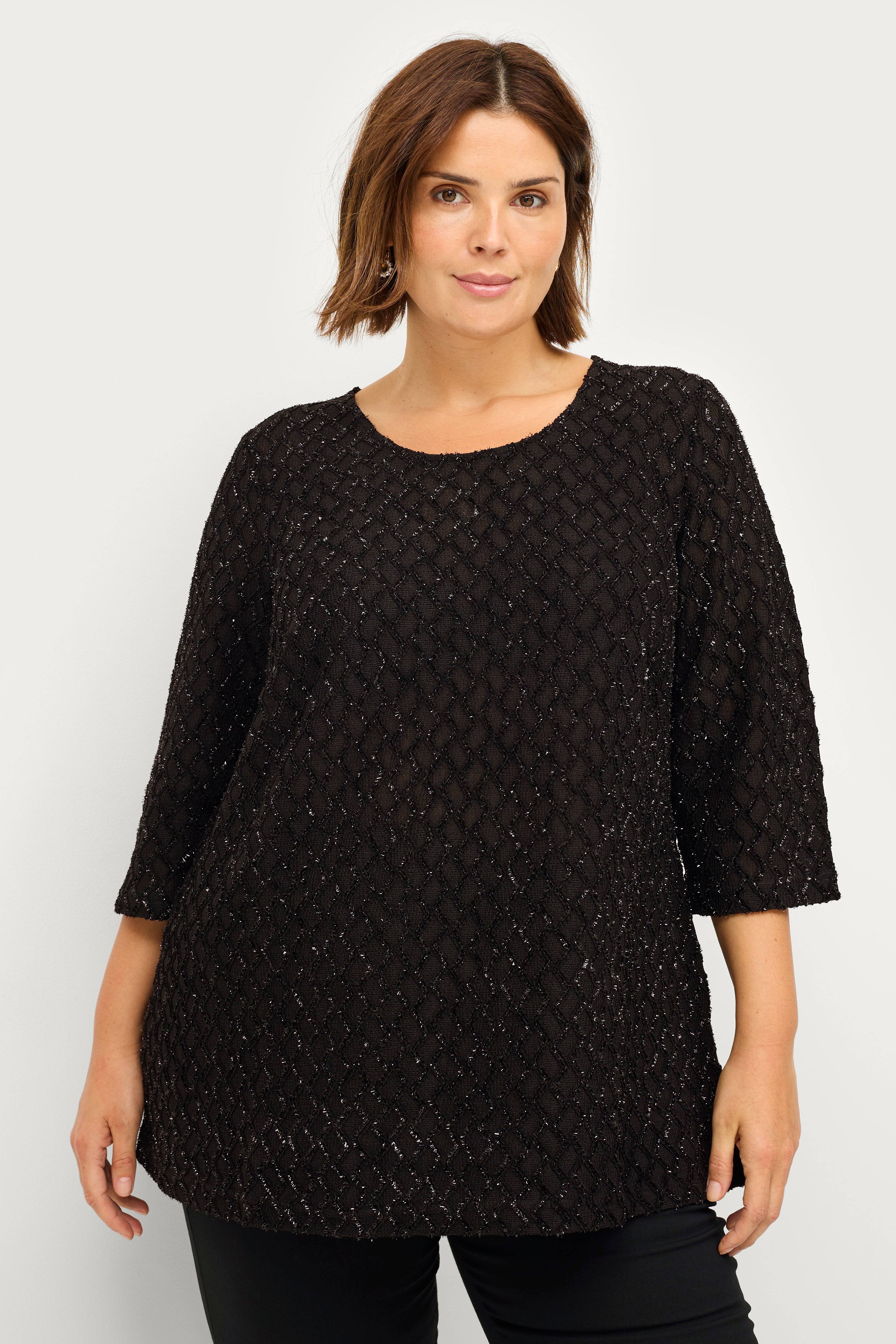 • Kimalteleva rakennekuvio• 3/4-pituiset hihat• Pyöreä pääntie halkiolla takaosa• Plus-koot