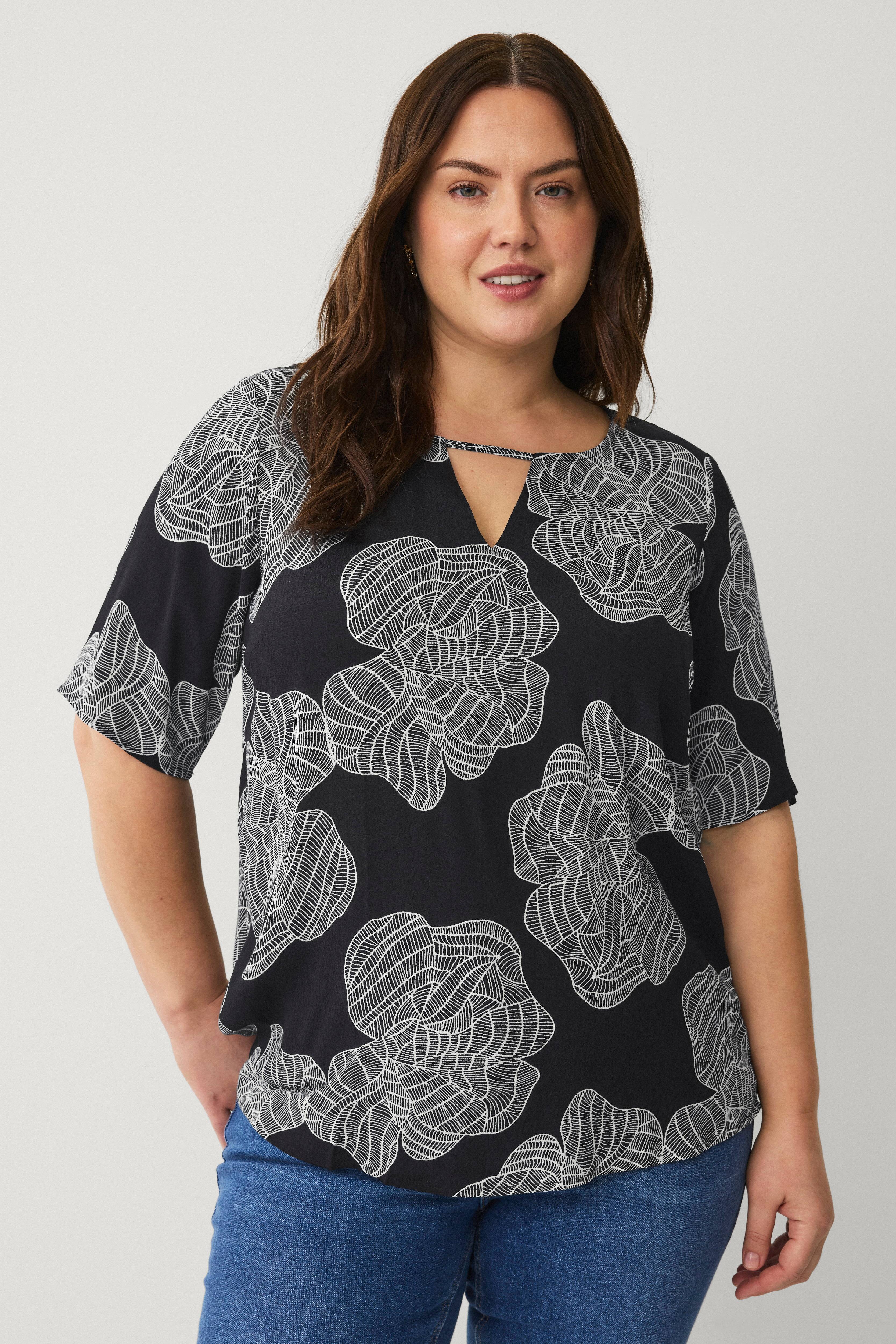 • Plus-koot• Malli rennolla istuvuudella• Pyöreä pääntie halkiolla edessä• Puolipitkä hiha