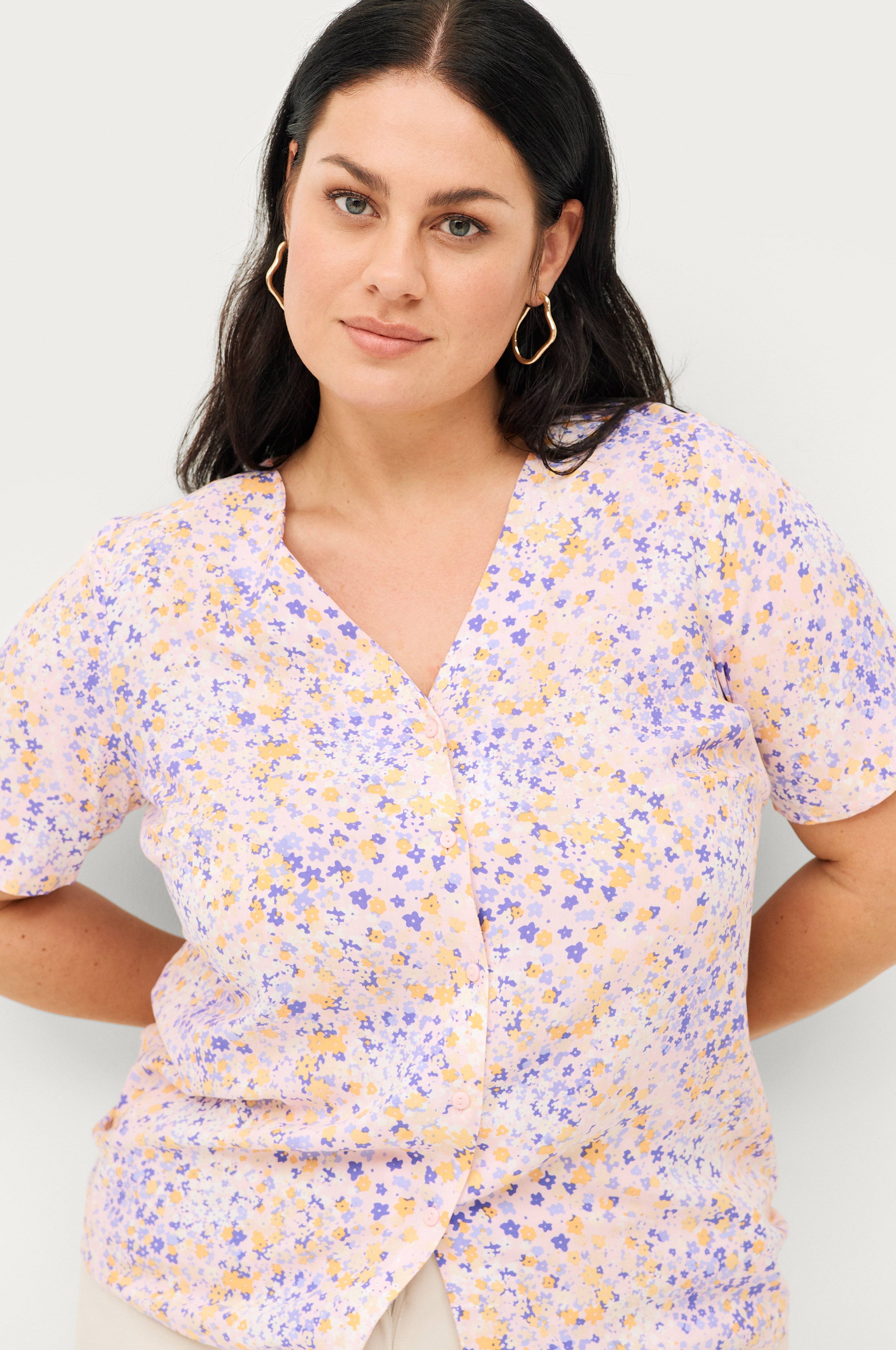 • Kuvioitu pyjamapaita viskoosista• V-kaula-aukko• Napit edessä• Lyhyet hihat• Plus-koot