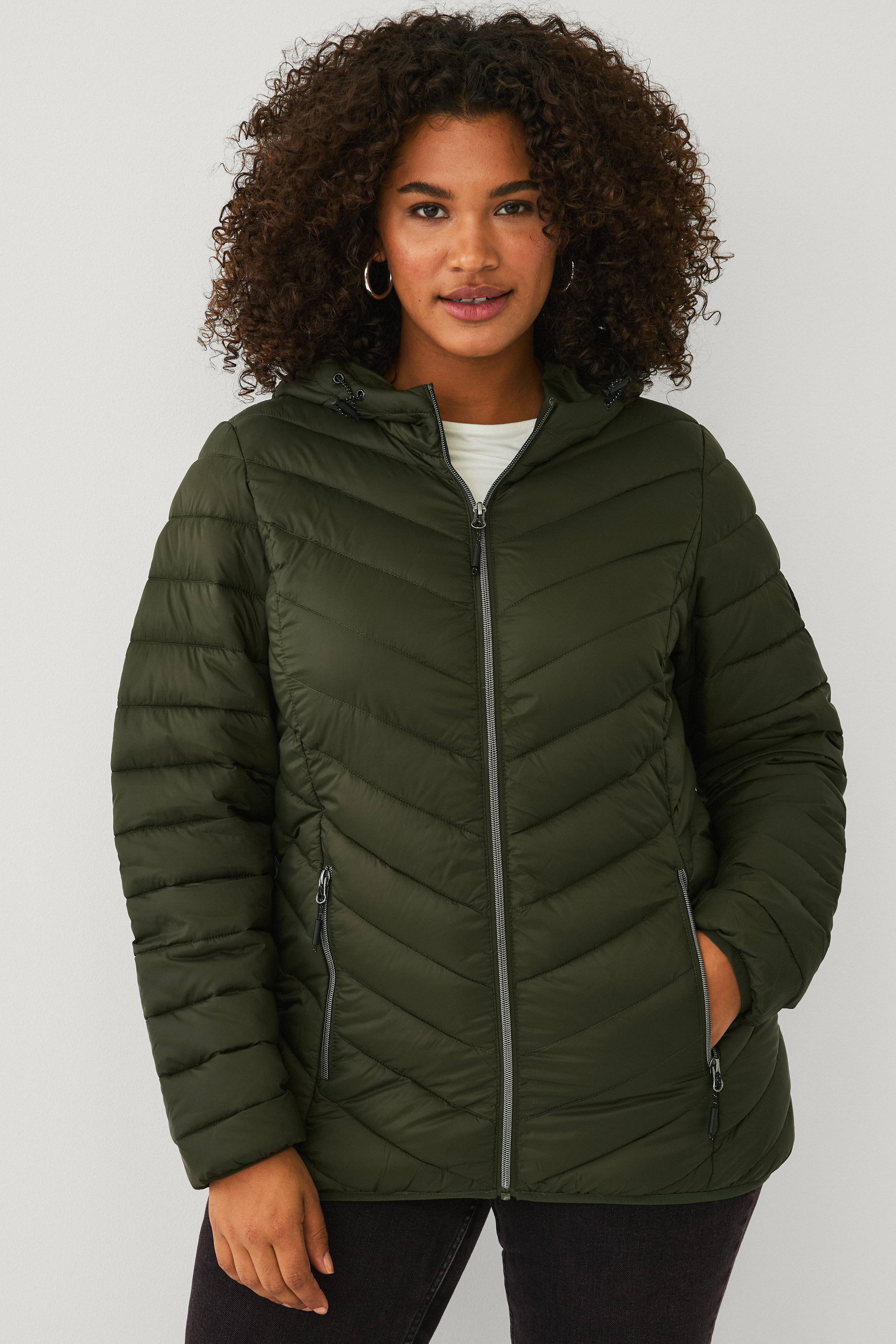 • Plus-koot• Kevyt takki toppauksella• Vetoketju edessä• Kaksi vetoketjutaskua• Elastinen reuna hihansuissa ja alhaalla• Huppu kiristysnyörillä• Pituus: 72 cm koossa S