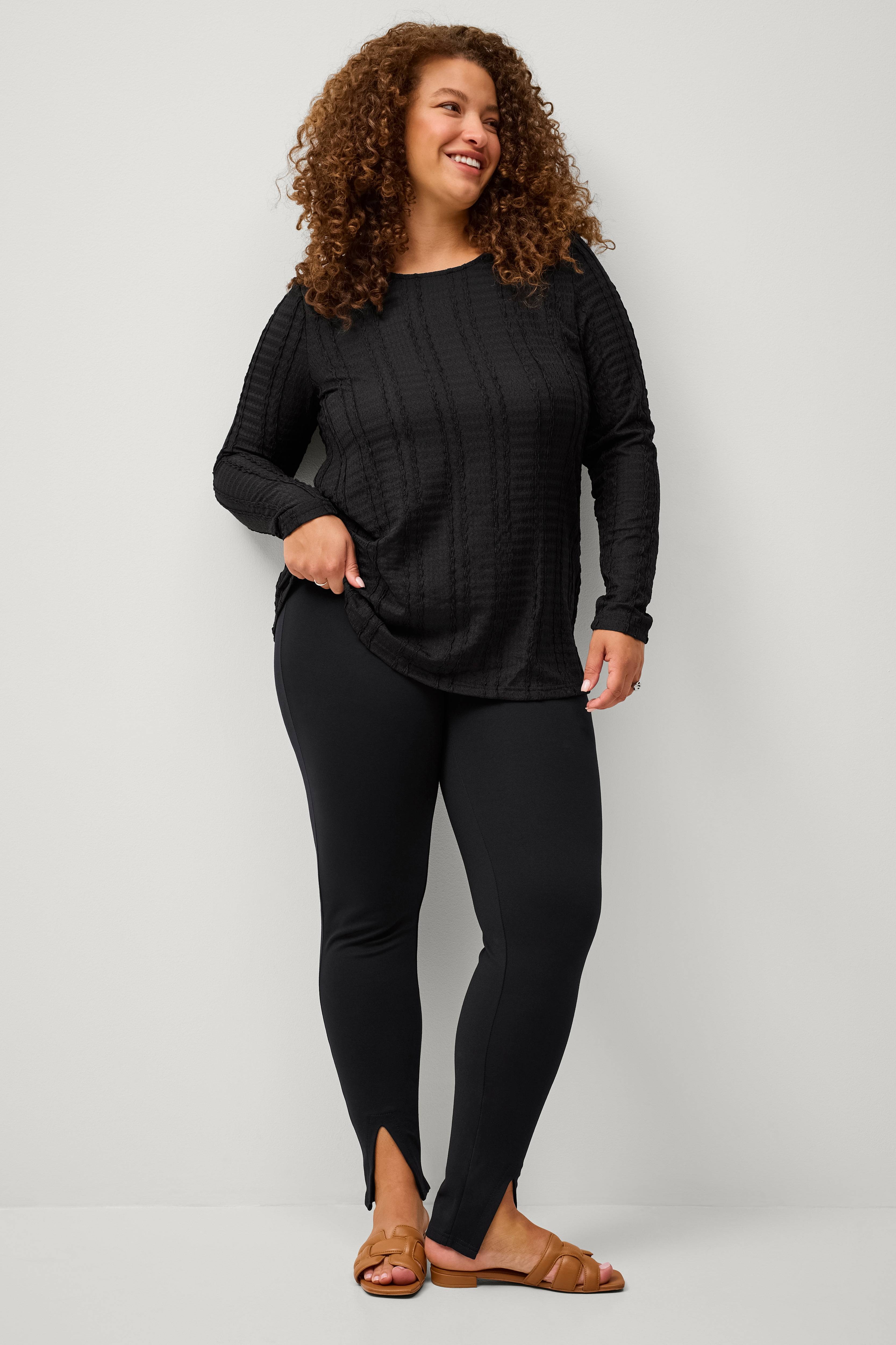 • Plus-koot• Suora, kuviokudottu malli trikoosta• Pyöreä pääntie• Pitkä hiha