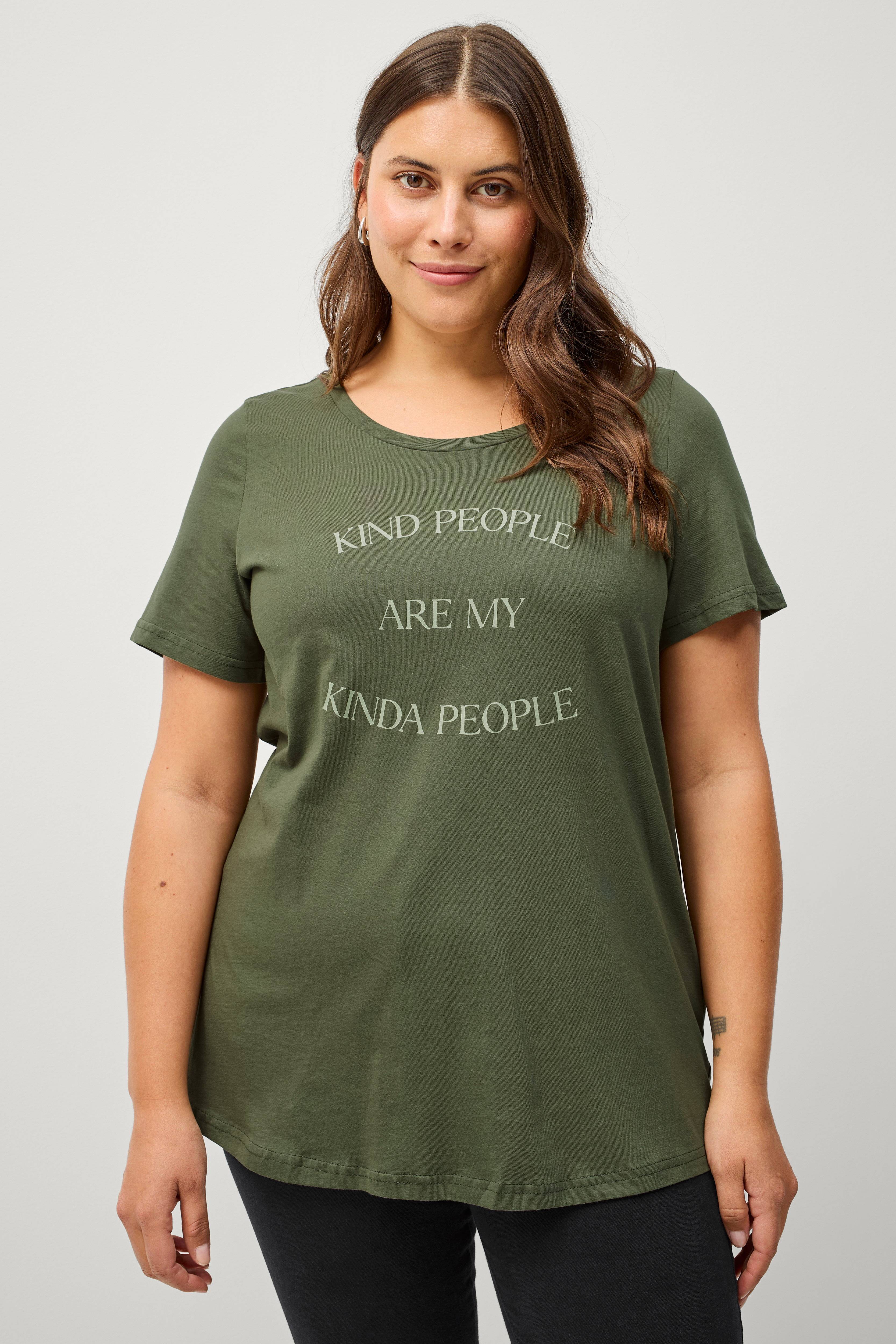 • Plus-koot• Lyhythihainen malli• Printti edessä• Ribattu pyöreä pääntie