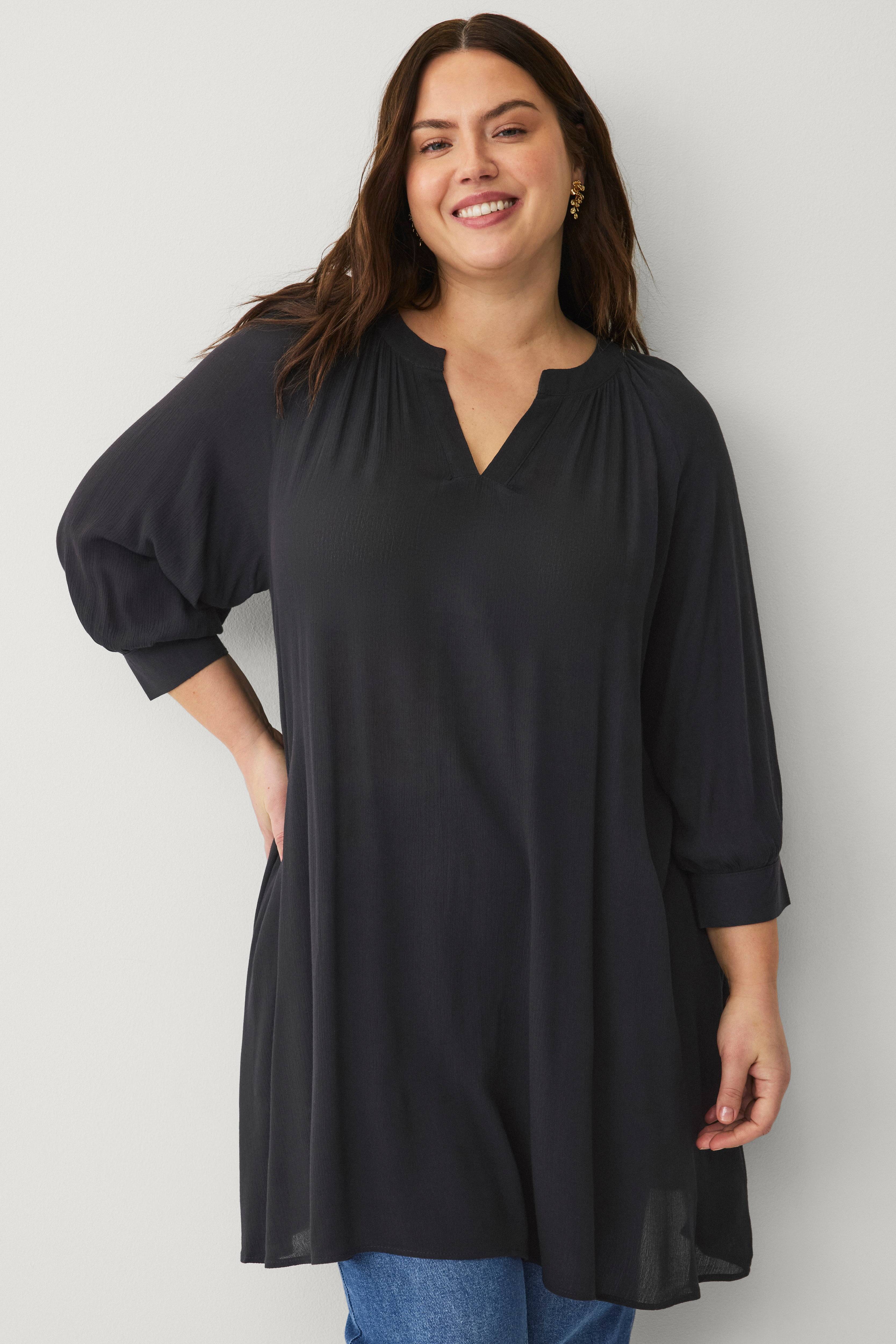 • Plus-koot• Levenevä malli krepistä• Poimutettu kaula-aukko halkiolla edessä• Pitkä, leveä hiha krepistä• Pituus: 93 cm koossa S