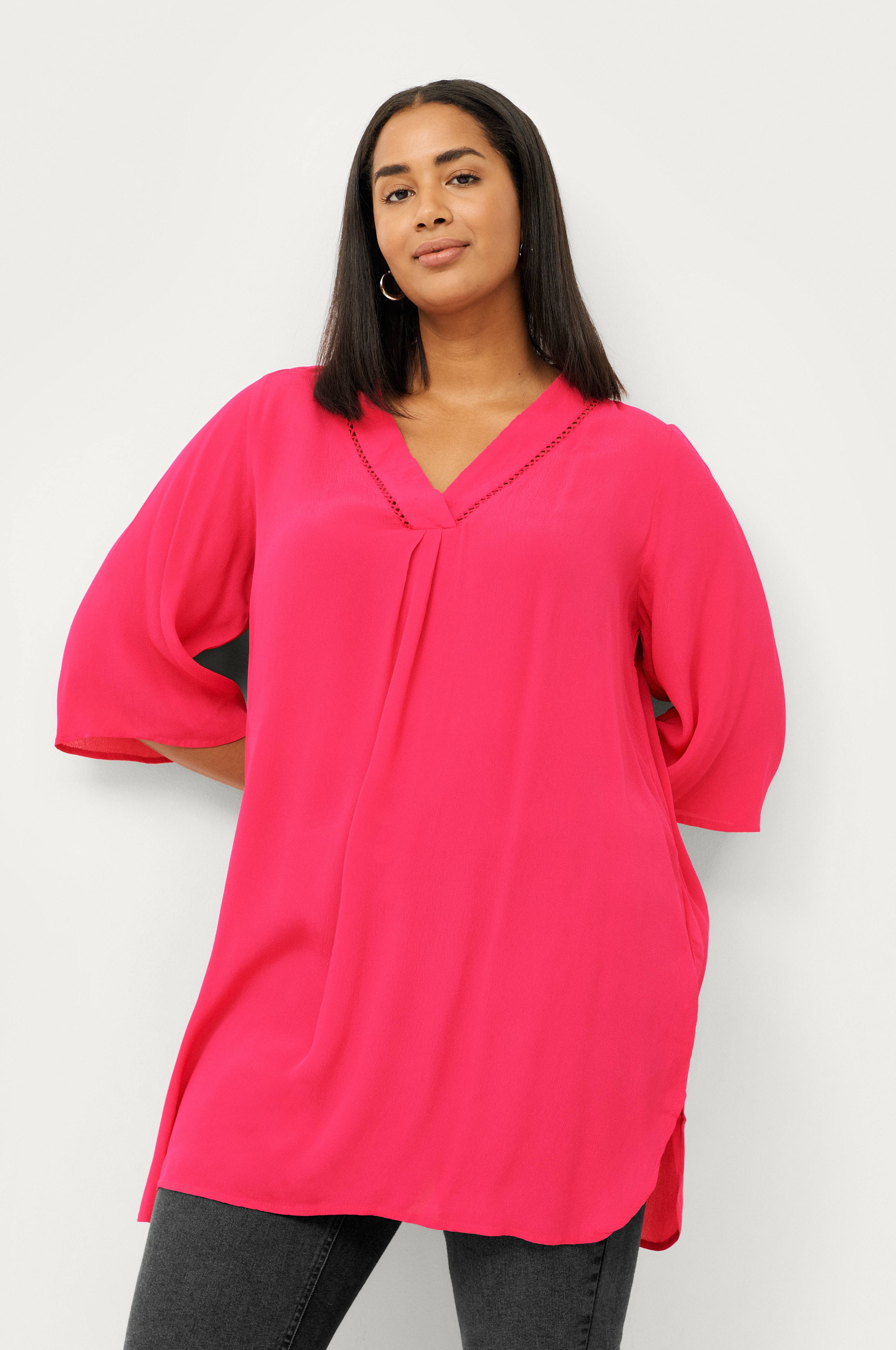 • Plus-koot• Levenevä, rento malli krepistä• V-muotoinen kaula pienellä pitsillä• Suora, leveä, 3/4-pituinen hiha• Pyöristetty helma• Pituus: 89 cm koossa S
