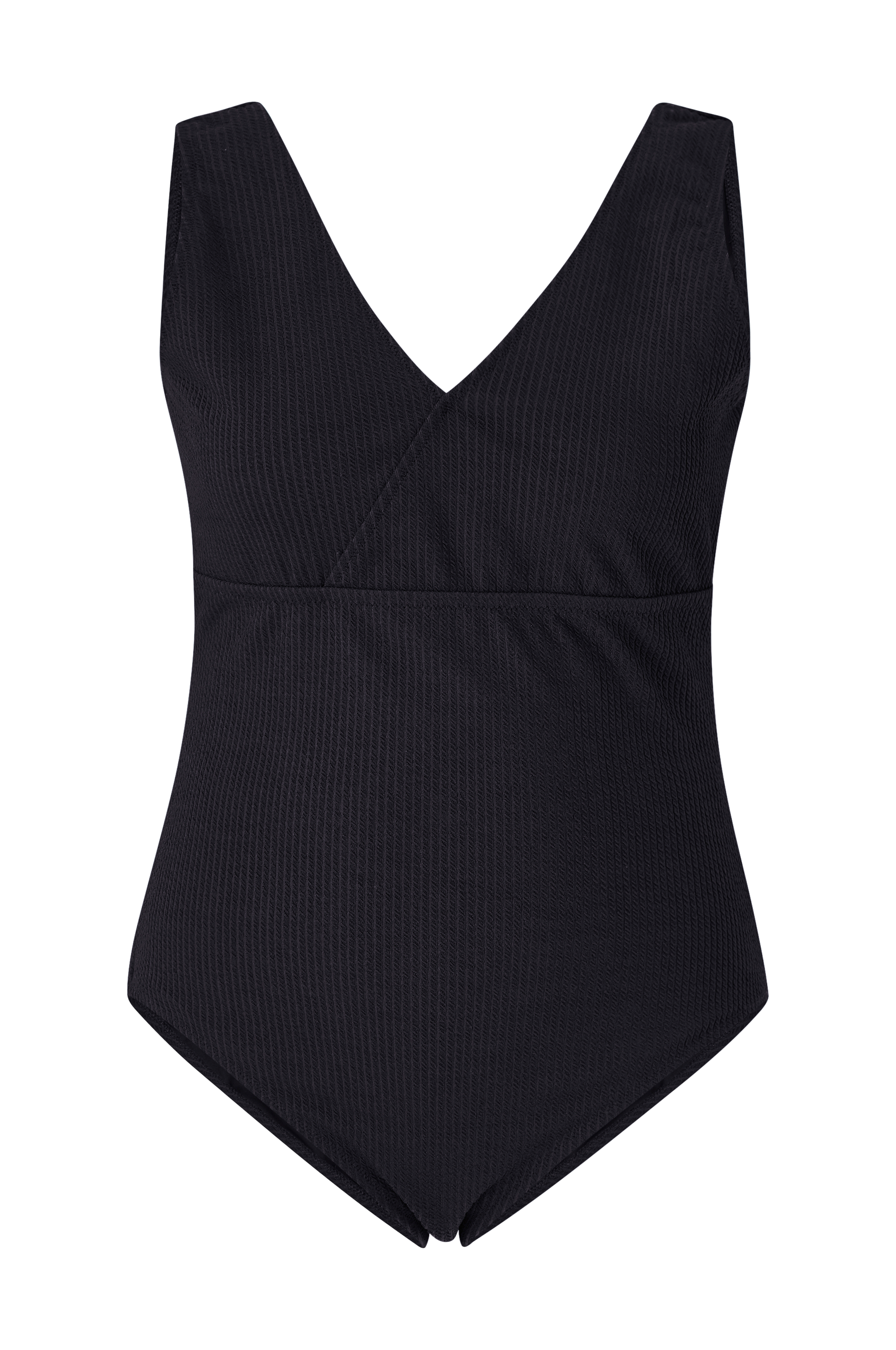 Uimapuku kuviopintaista, napakkaa trikoota, jossa tukeva verkkovuori edessä ja pehmeä trikoovuori takana. Kietaisumallinen V-pääntie edessä ja syvä pääntie takana.