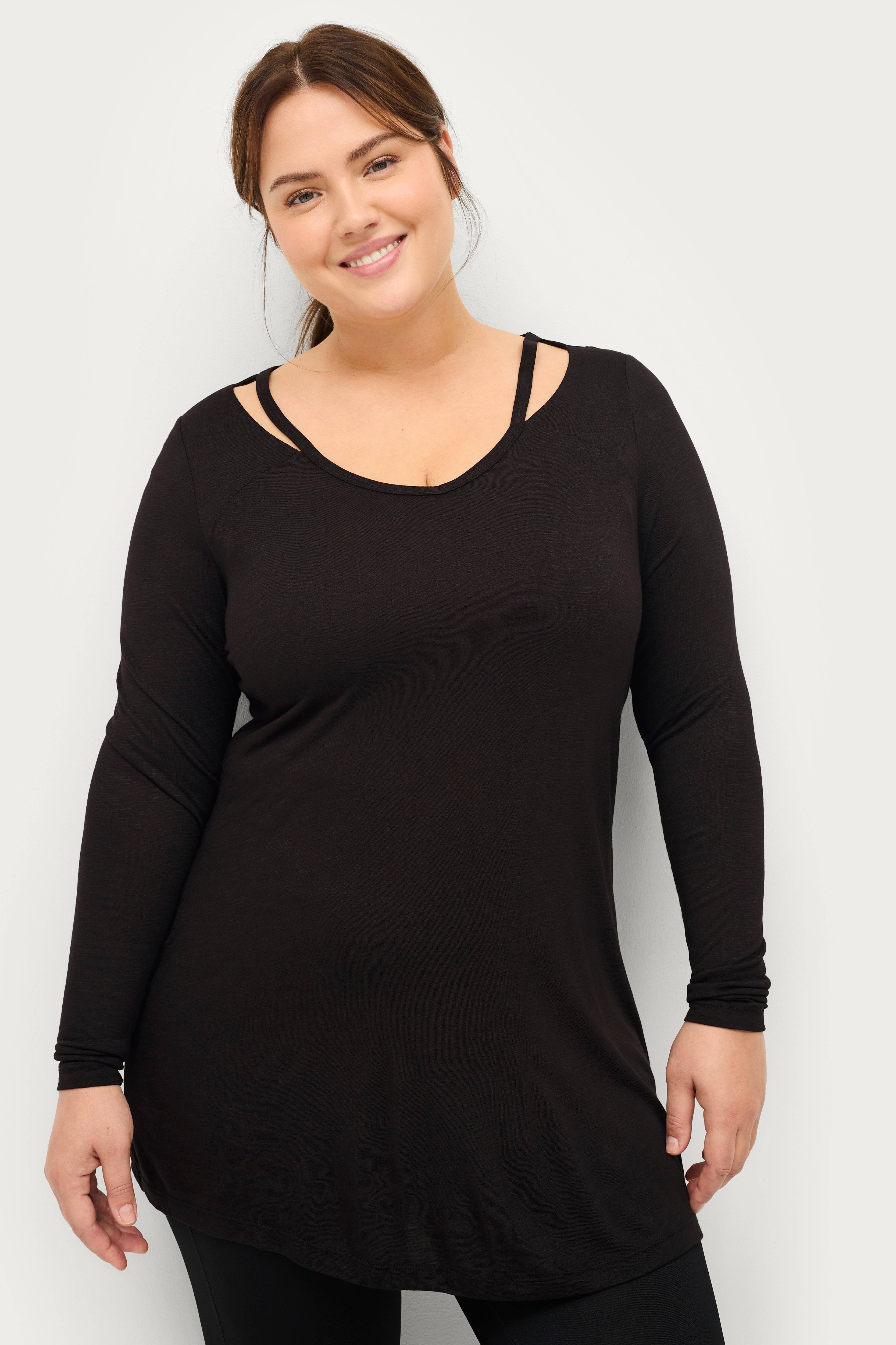 • Pitkähihainen urheilutoppi viskoosijersey-kankaasta• Löysä A-linjainen leikkaus• Pidempi malli• V-kaula-aukko• Leikkaukset olkapäissä• Joustava, kosteutta imevä materiaali• Plus-koot
