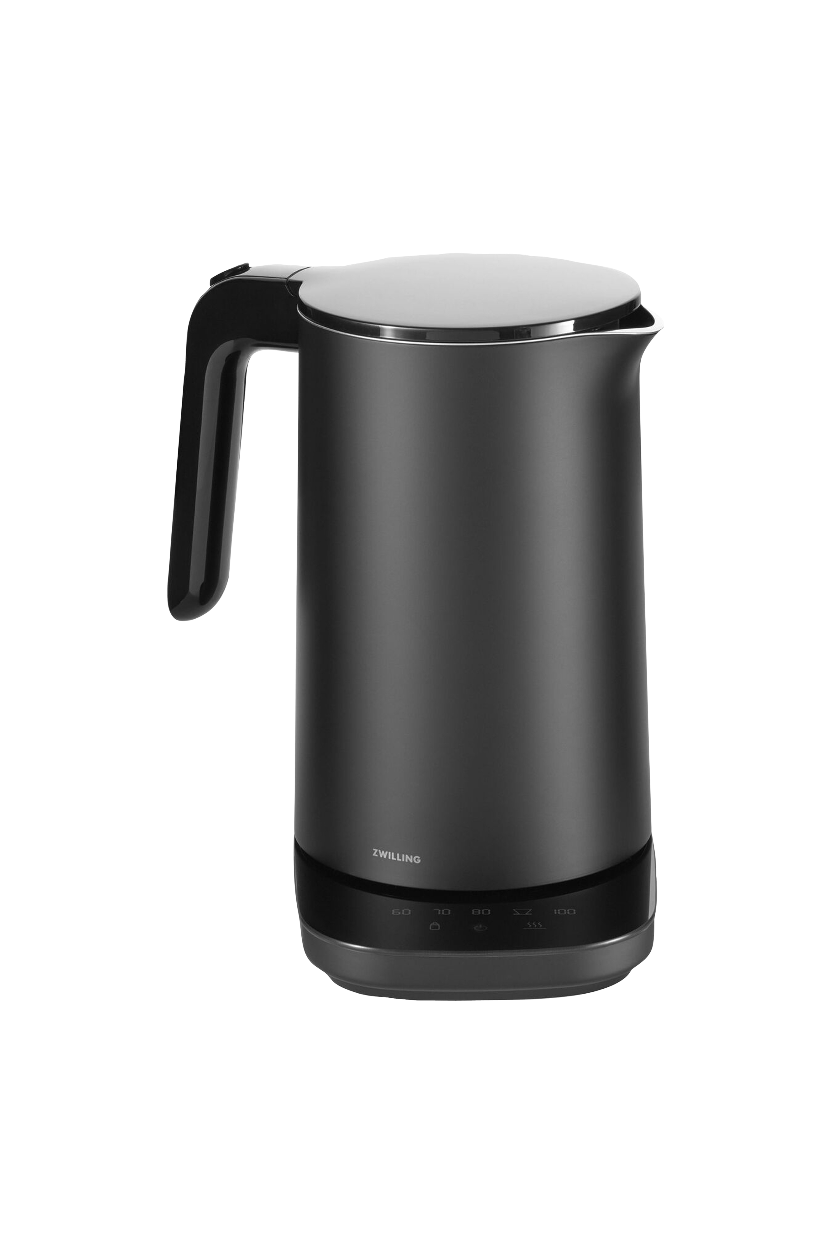 Zwilling Enfinigy® -vedenkeitin. Laadukas ja saumaton vesisäiliö ruostumatonta 18/10-terästä. Tehokas erillinen elementti, joka tuottaa nopeasti lämpöä. Kaksinkertainen seinä eristää lämpöä ja pitää ulkopuolen viileänä. Ruostumaton kaatosuodatin, automaattinen virrankatkaisu, kuivumis- ja ylikuumenemissuoja. Vedenkeittimen voi asettaa 360 asteen jalustalle, jossa on kätevä säilytyspaikka johdolle. Soft-opening-kansi, joka avautuu kahvaan ergonomisesti sijoitetusta painikkeesta.